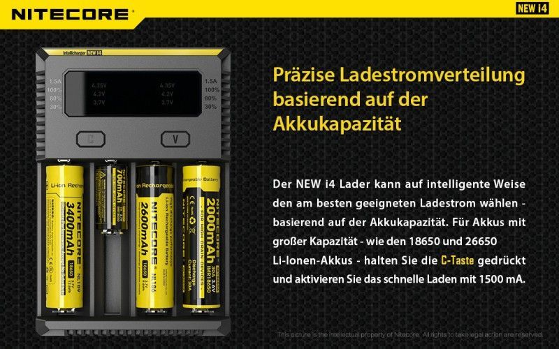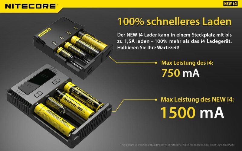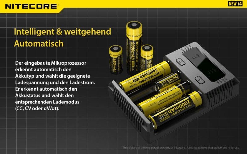 Nitecore Nitecore NEW i4 - Universalladegerät für Rundzellen Li-Ion, LiFePo, NiMH, NiCd Akkus