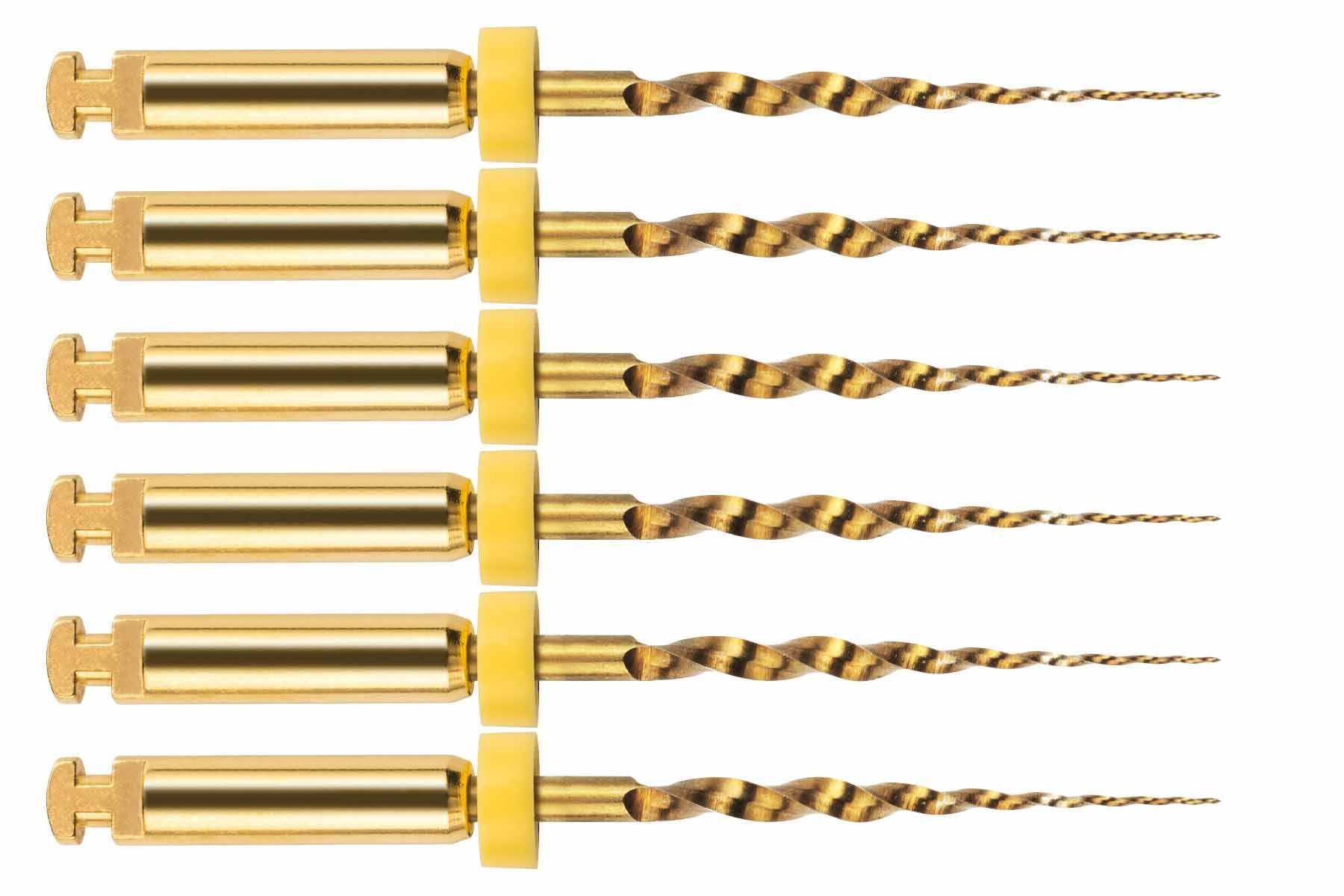 NiTi-Endodontie Feilen für die maschinelle Aufbereitung von Wurzelkanälen. Starke und widerstandsfähige aber durchaus flexible Feilen. Geliefert werden 6 Feilen in F1 in 25mm