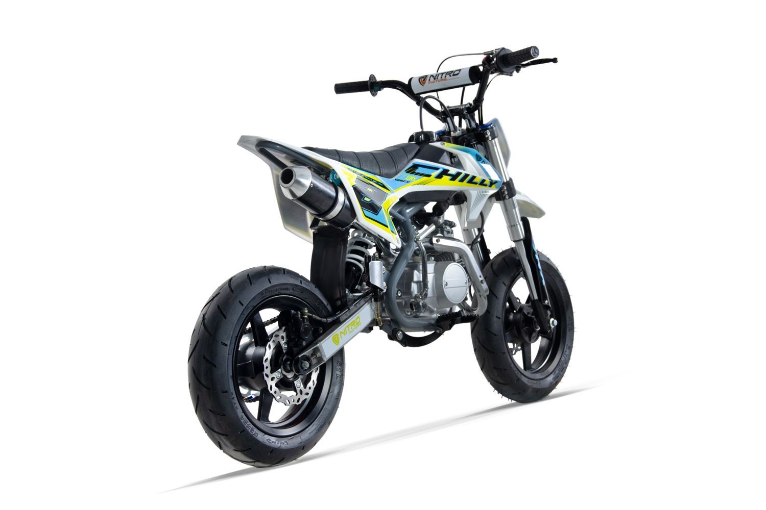 Art.-Nr.: 1111551 NITRO MOTORS 125cc Kinder Dirtbike CHILLY URX 12 12 4-Gang Upside down Stoßdämpfer Slick Reifen hydraulik Bremsen Semi-Automatik Highlights: 125cc Motor Semi-Automatisches 4-Gang-Getriebe Robuster Chromstahl-Wiegenrahmen mit Roboter-Schweißtechnik Hydraulische Bremsen Hochfester St