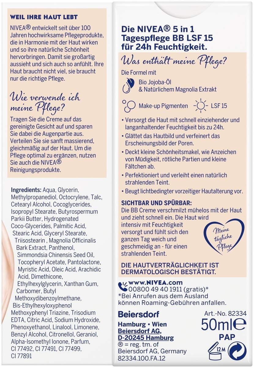 NIVEA 5in1 Tagespflege BB 24h Feuchtigkeit Mittlerer bis Dunkler Hauttyp 1x 50 ml
