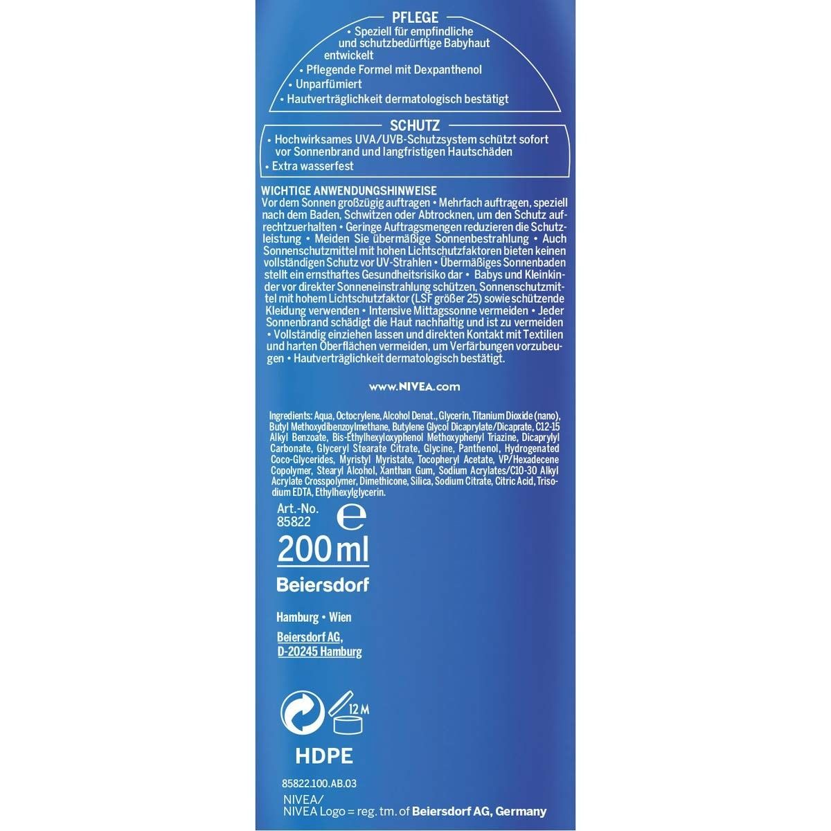 NIVEA Nivea Sun Baby PFL Sonnenmilk 50 + , 1er Pack (1 x 200 ml)