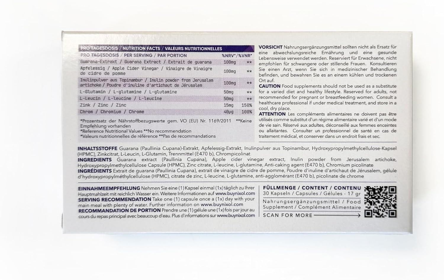 NIXOL Makronährstoff-Stoffwechselunterstützung mit Apfelessig, Guarana-Extrakt, Inulinpulver aus Topinambur zur Unterstützung des Körpers, Set 2x30 Kapseln.