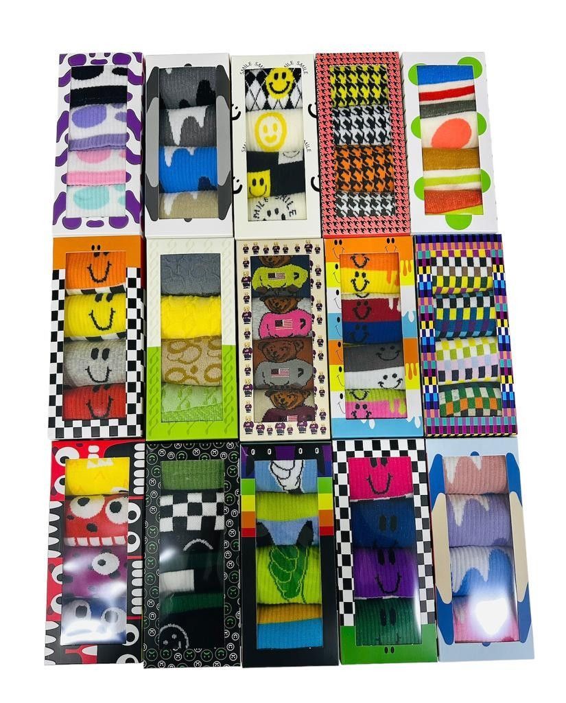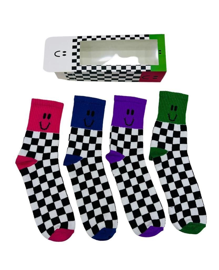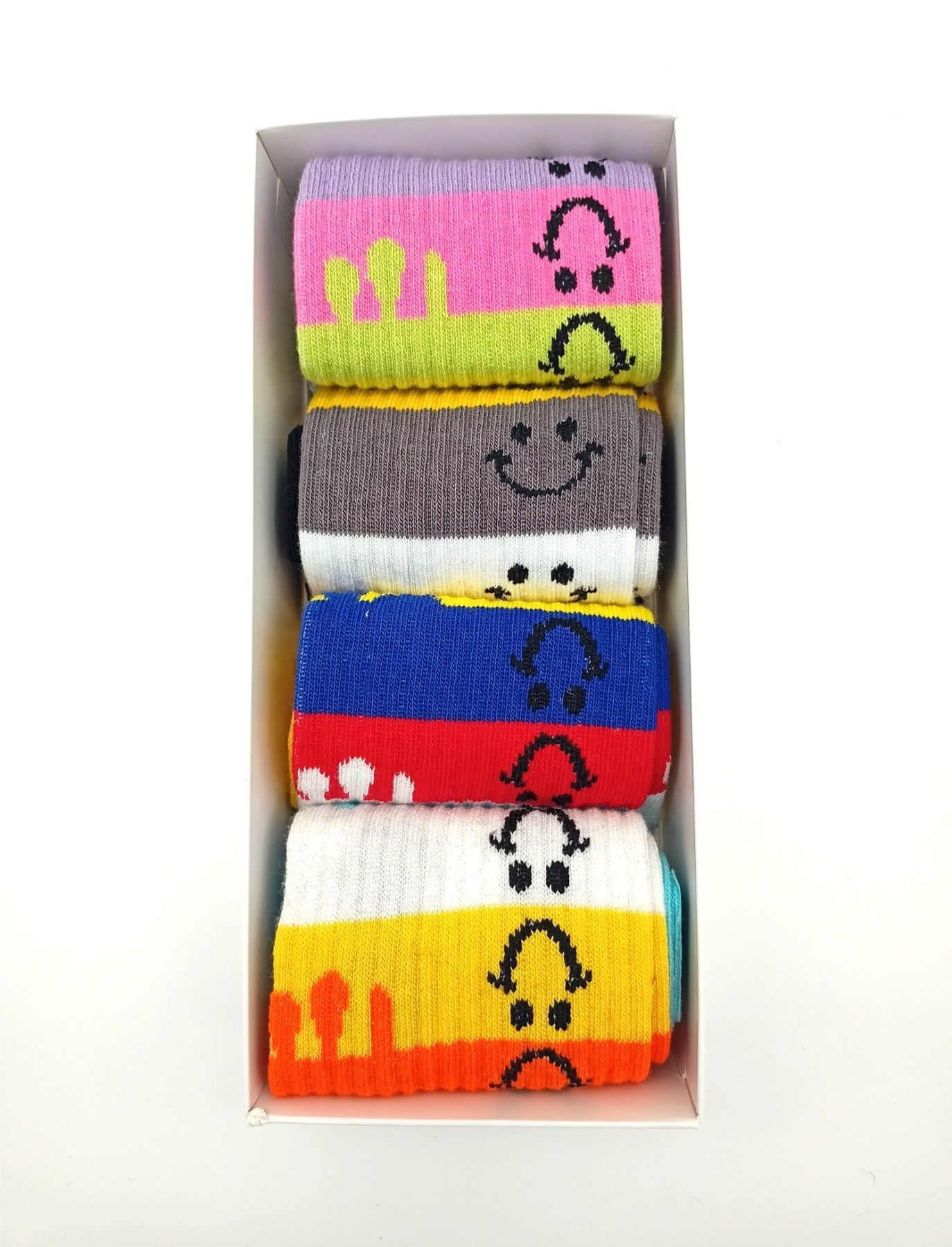 NoblesBox Freizeitsocken Lustige Socken (Box, 4 Paar) Smiley Socken, 37-43 Größe