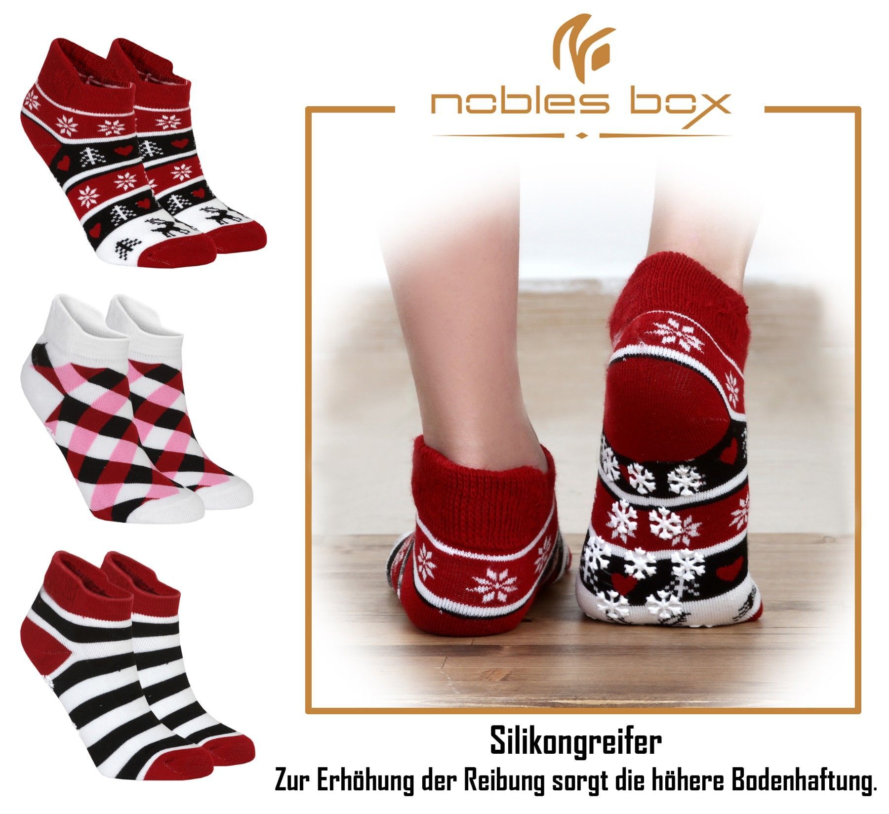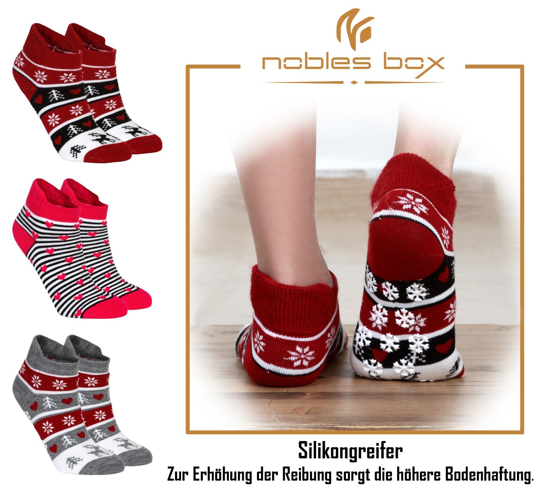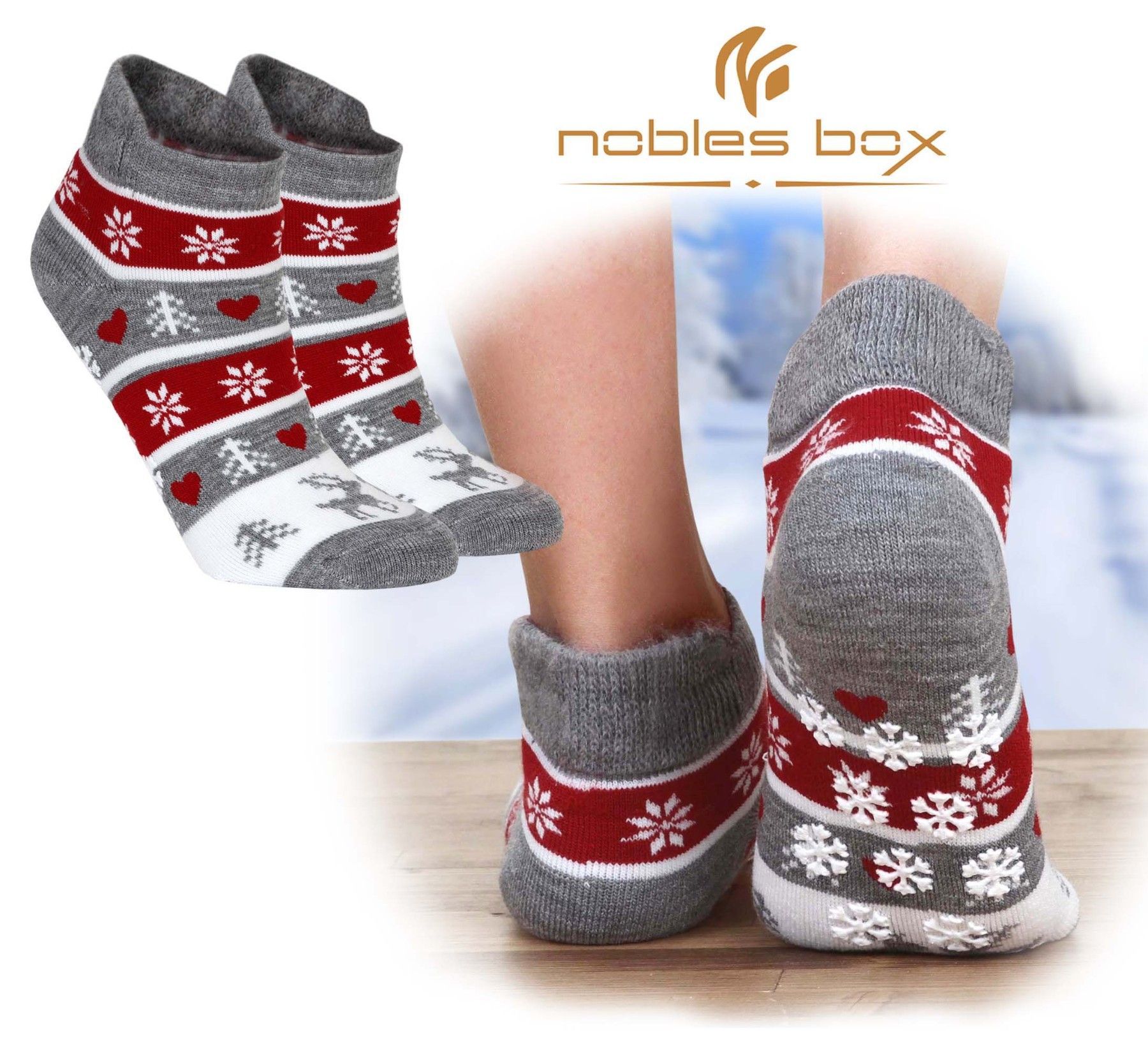 NoblesBox Haussocken Rutschfest Thermosocken (Beutel, 3-Paar, 37-40 EU Größe)