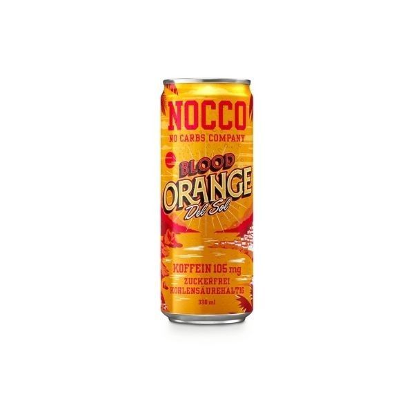 NOCCO Blood Orange Del Sol 330ml Den BCAA Energydrink von NOCCO gibt es jetzt in der neuen Summer Edition Nocco Blood Orange Del Sol . NOCCO BCAA Blood Orange Del Sol enthält Kohlensäure, ist ohne Zucker und schmeckt erfrischend. Eine Dose (330ml) enthält 2500 mg BCAA und 105 mg Koffein. Nocco Blood