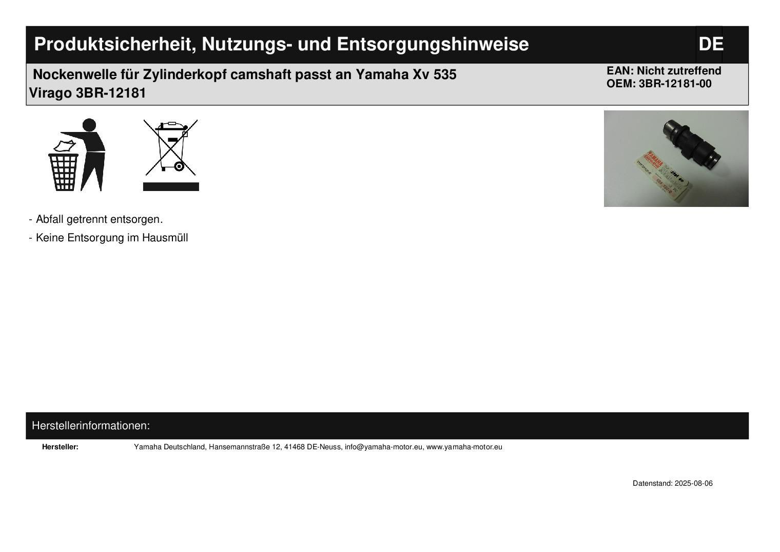 Nockenwelle für Zylinderkopf camshaft passt an Yamaha Xv 535 Virago 3BR-12181