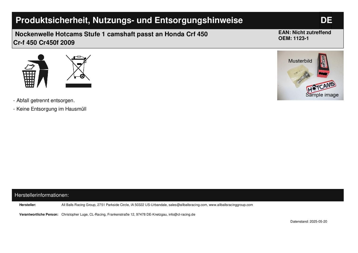 Nockenwelle Hotcams Stufe 1 camshaft passt an Honda Crf 450 Cr-f 450 Cr450f 2009