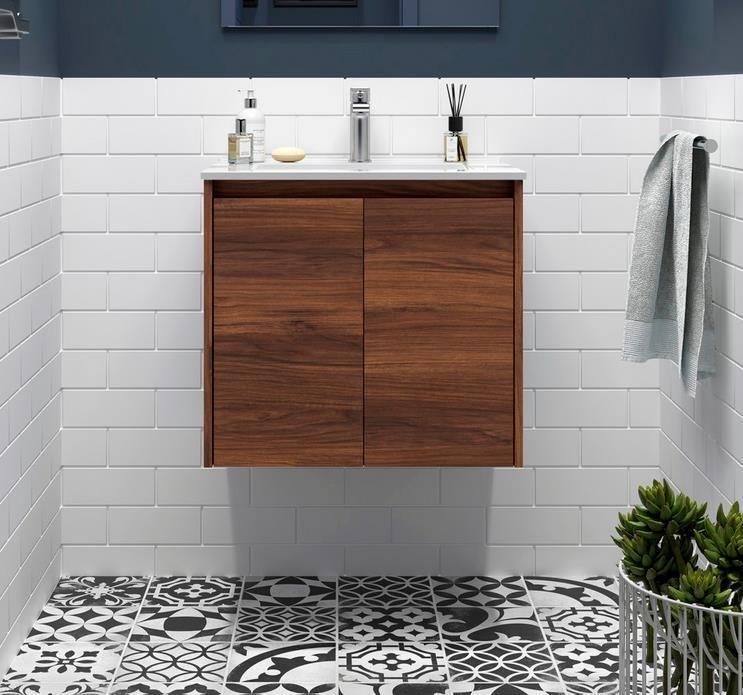 Noja Unterschrank 600 2 Türen + Waschbecken Nussbaum