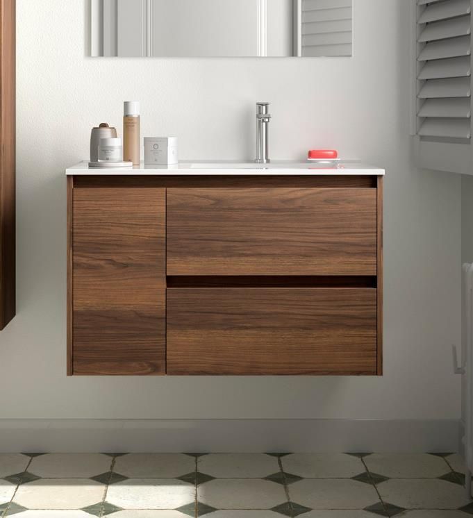Noja Unterschrank 850 2 Schubladen 1 Tür li + Waschbecken Nussbaum