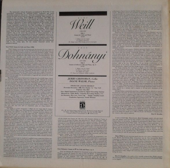 Nonesuch Records D-79016 - Kurt Weill, Ernst von Dohnányi, Jerry Grossman, Dian