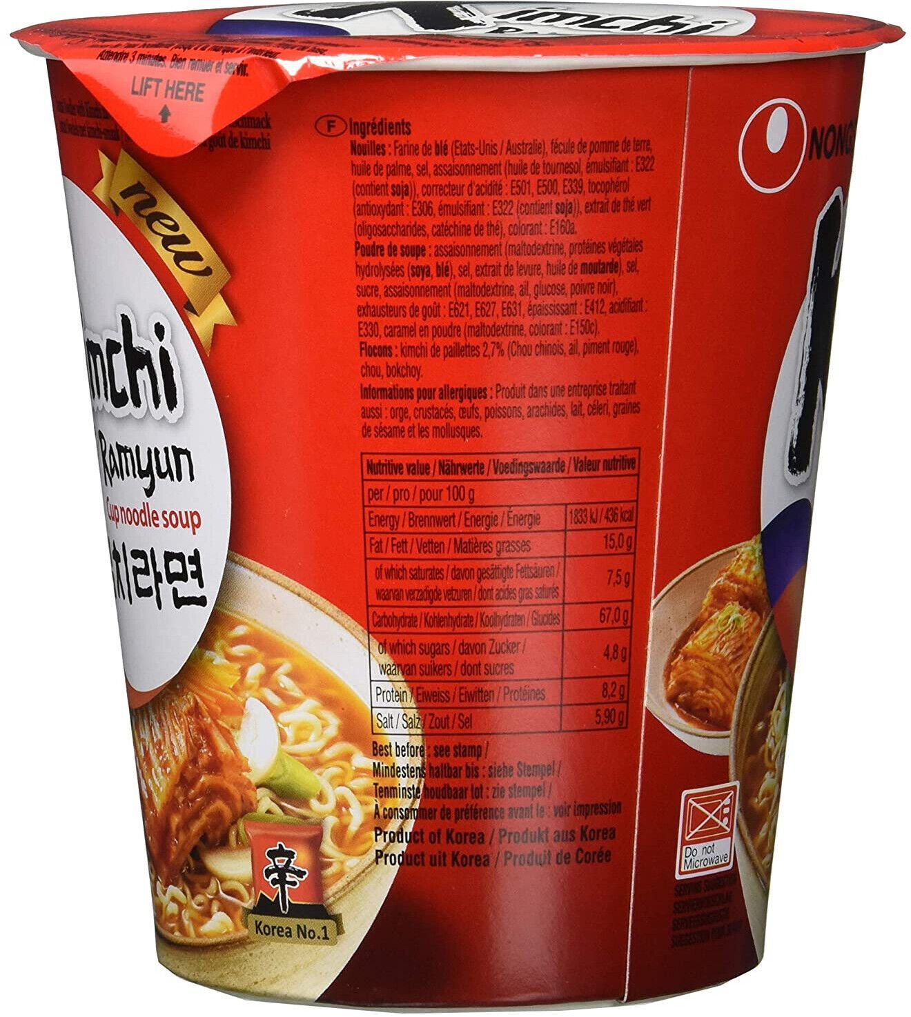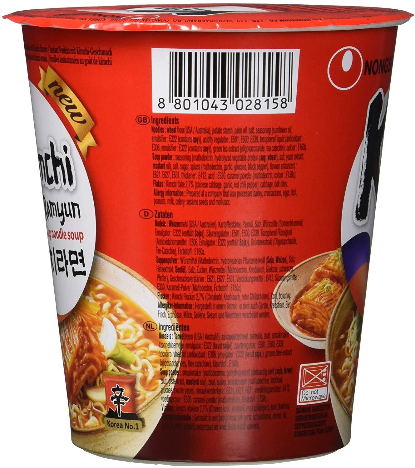 Nong Shim Instantnudeln Kimchi Ramyun Koreanische Ramen Cup Suppe 12 x 75 g