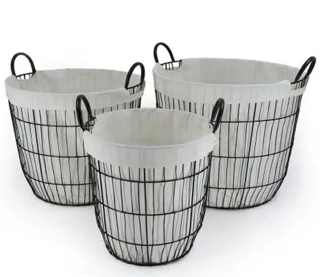 Noor Living Korb, Metall, 3er Set, schwarz/weiß, rund