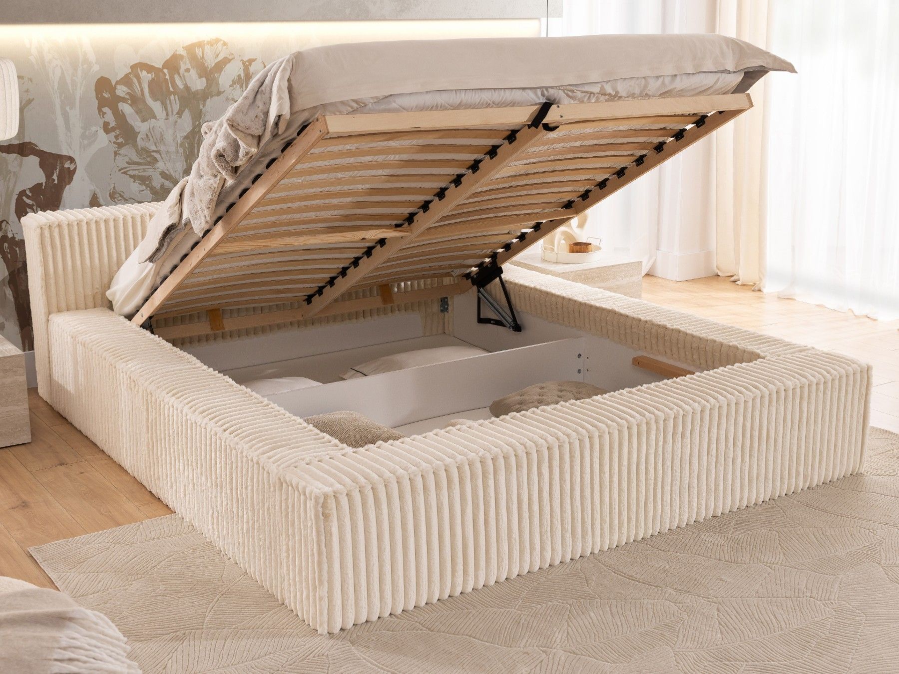 Noord - Modernes Polsterbett aus Plüschcord mit Lattenrost und großem Bettkasten