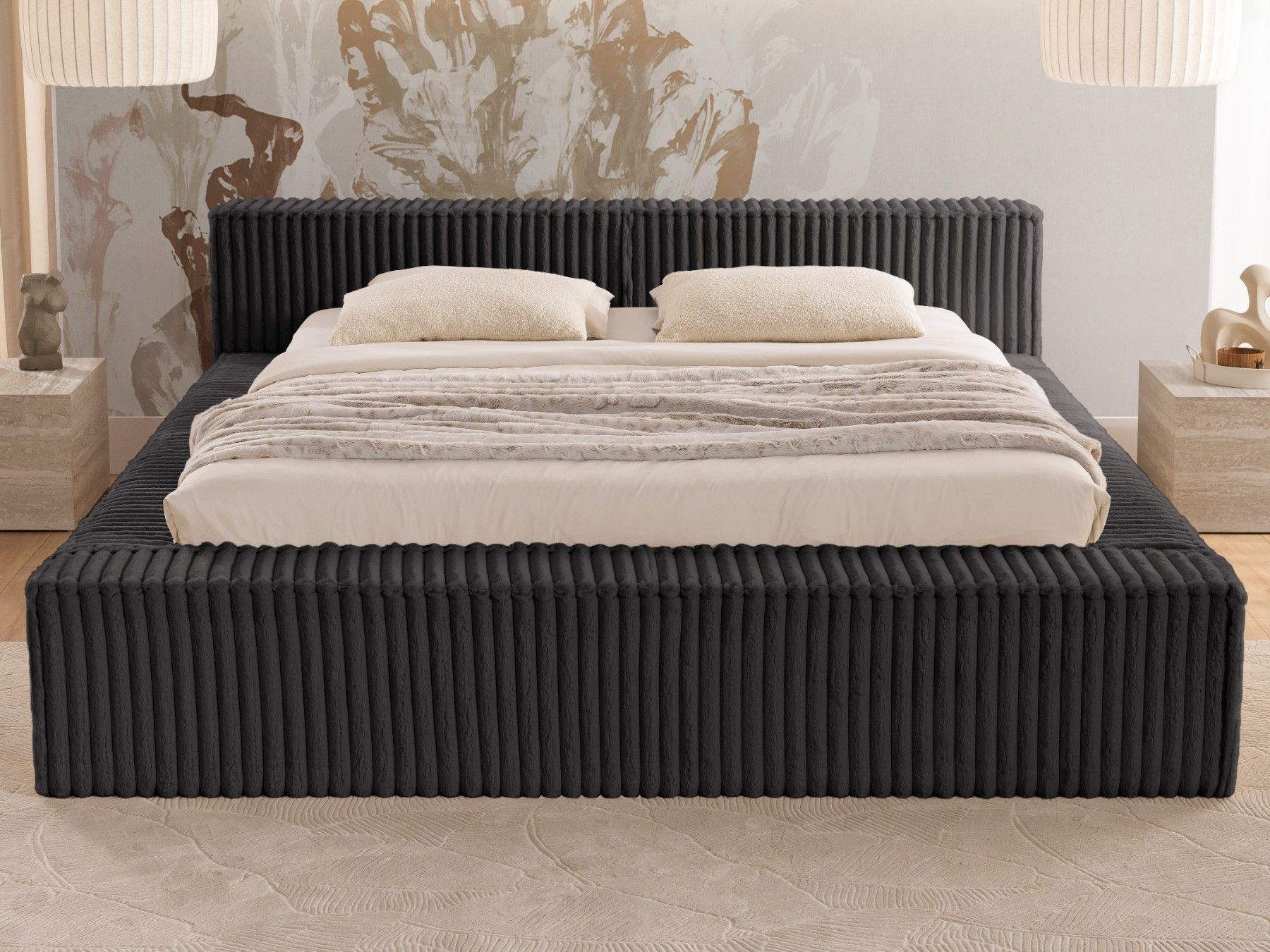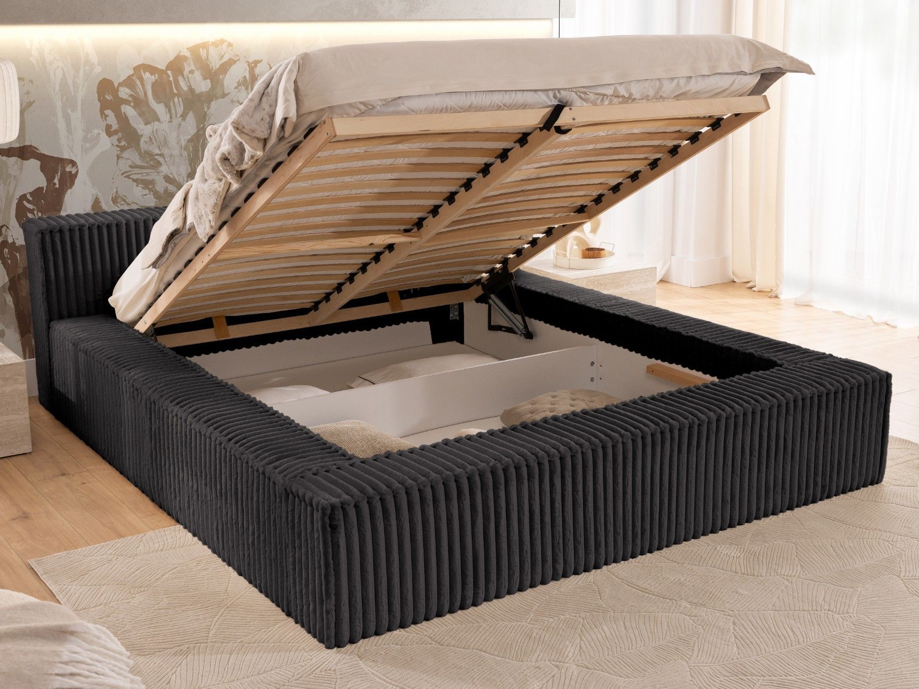 Noord - Modernes Polsterbett aus Plüschcord mit Lattenrost und großem Bettkasten