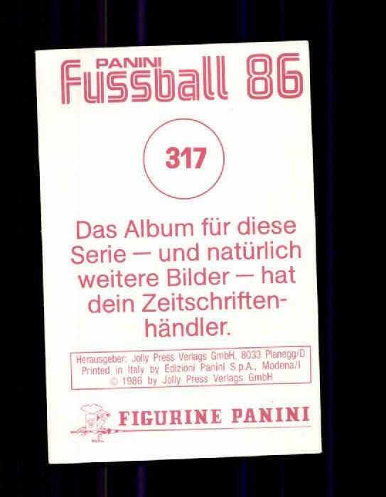 Norbert Fruck Eintracht Frankfurt Panini Sammelbild 1986 Nr. 317