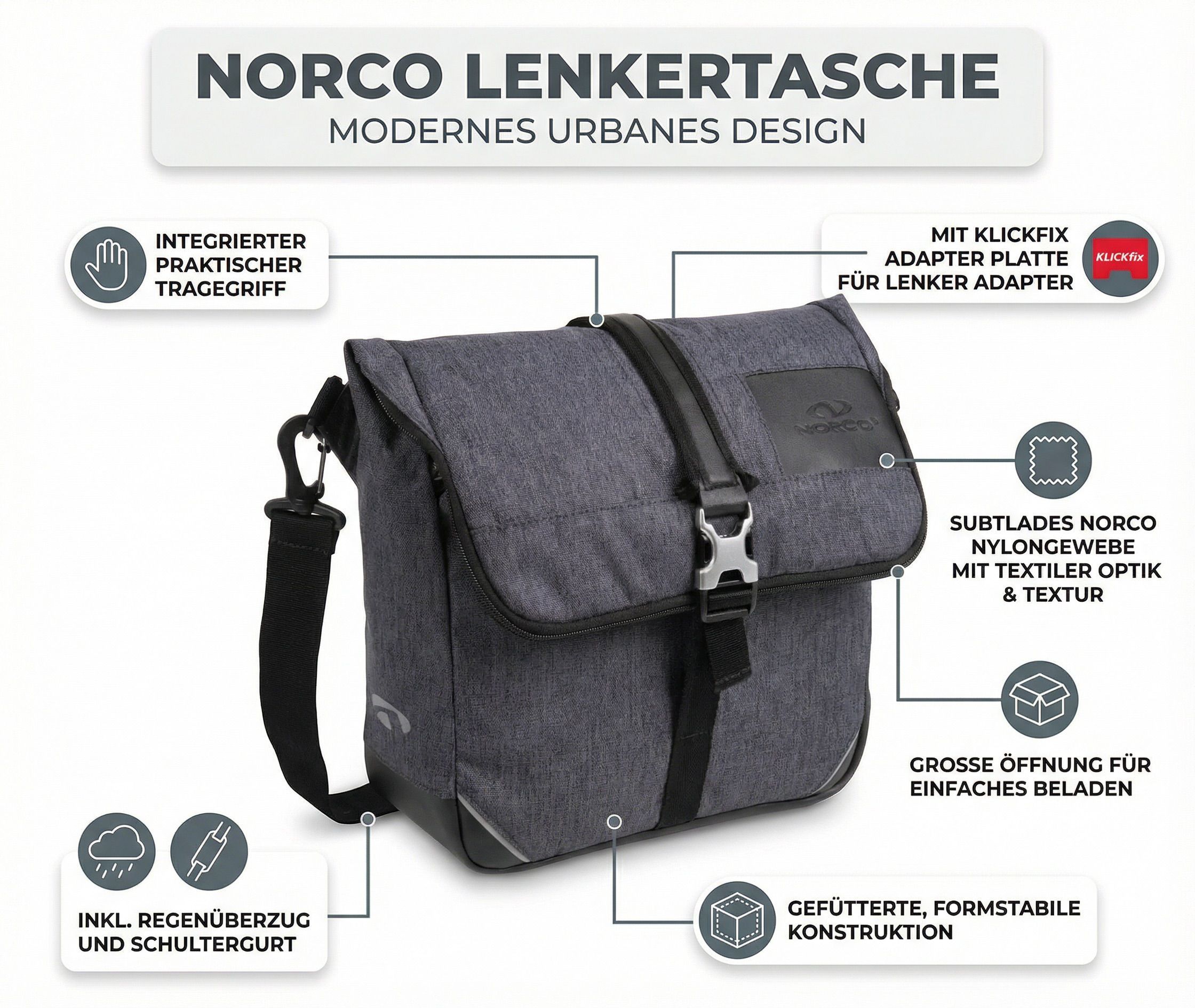 Norco Burnham Lenkertasche mit KlickFix Schultergurt 7,5 Liter Volumen