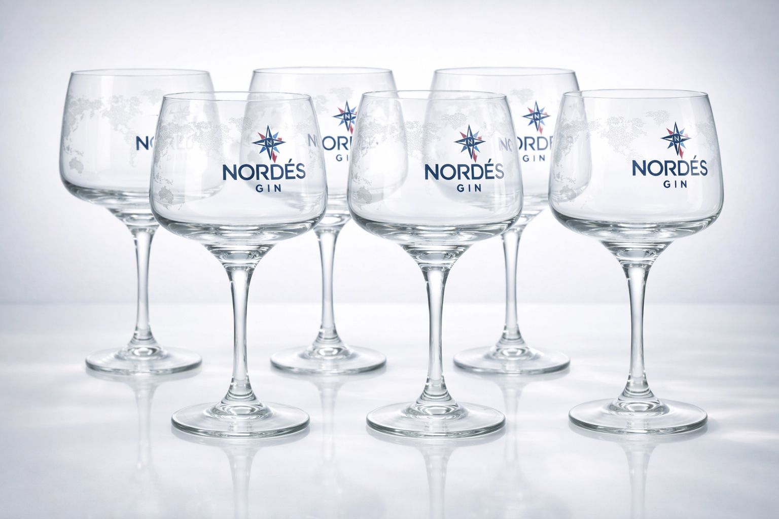 Nordés Gin Glas 6er Set – Original Ballon Gin Tonic Gläser mit Stiel – Großes C
