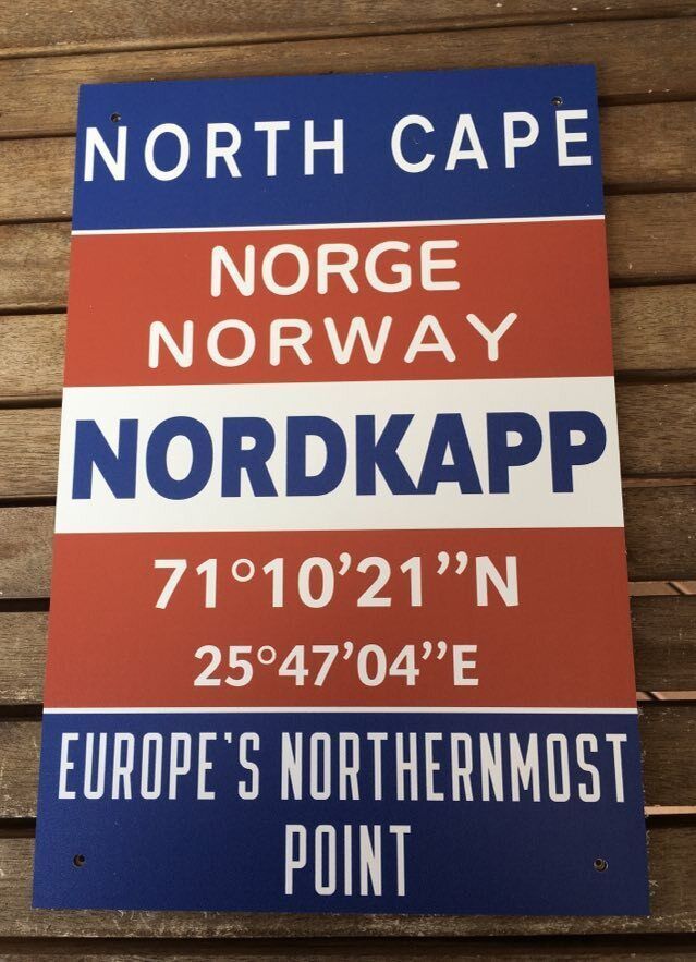 Aluminium - Dibond Schild Norge Norway Norwegen North Cape Nordkapp Europe s Northernmost Point Am nördlichsten Punkt von Europe steht dieses Schild, ein Muss für jeden Norwegen Fahrer und Nordkapp Explorer ! Größe 20x30 cm Versand Euro incl.