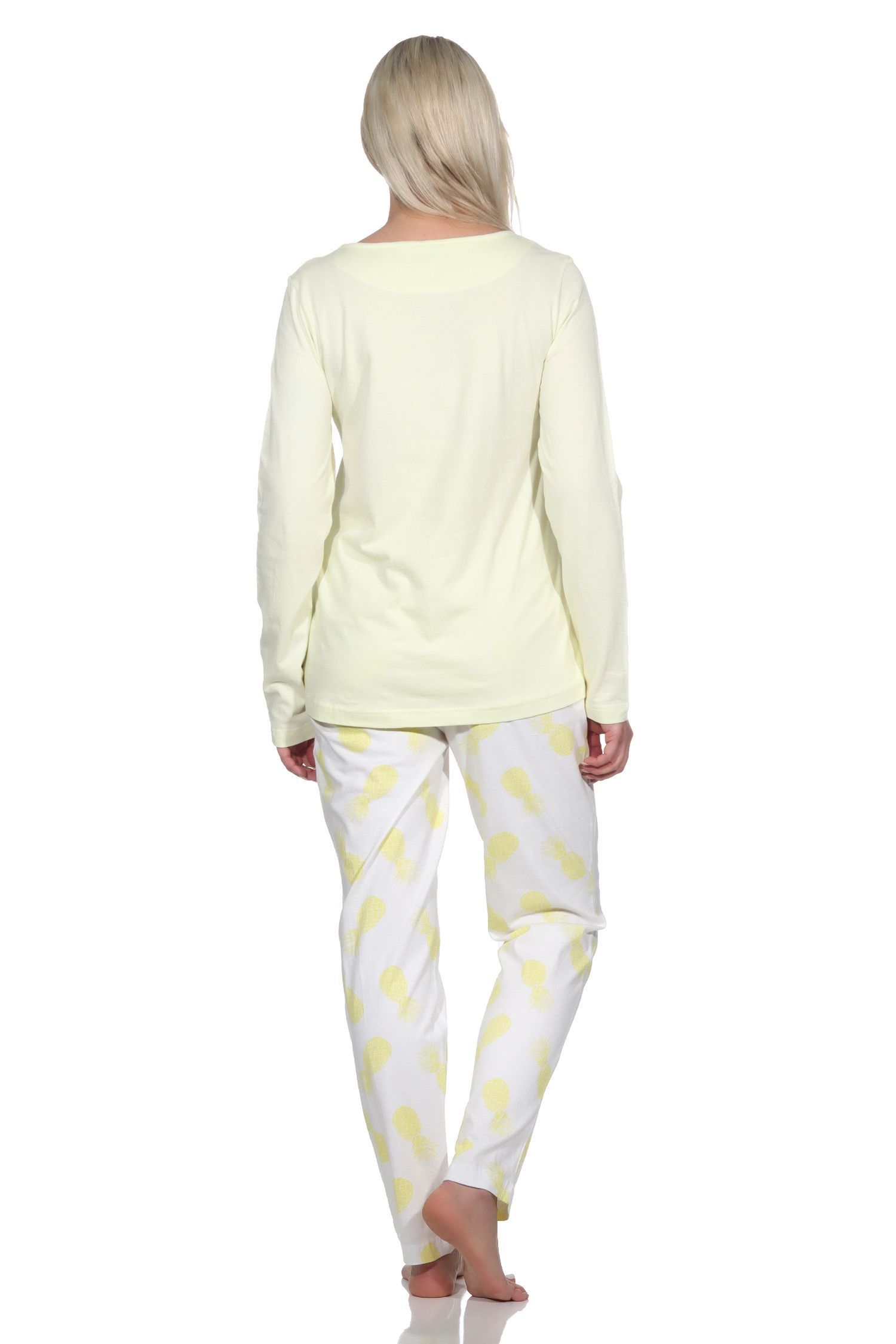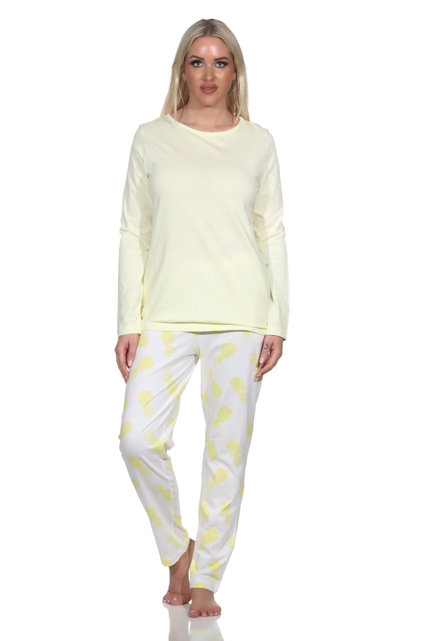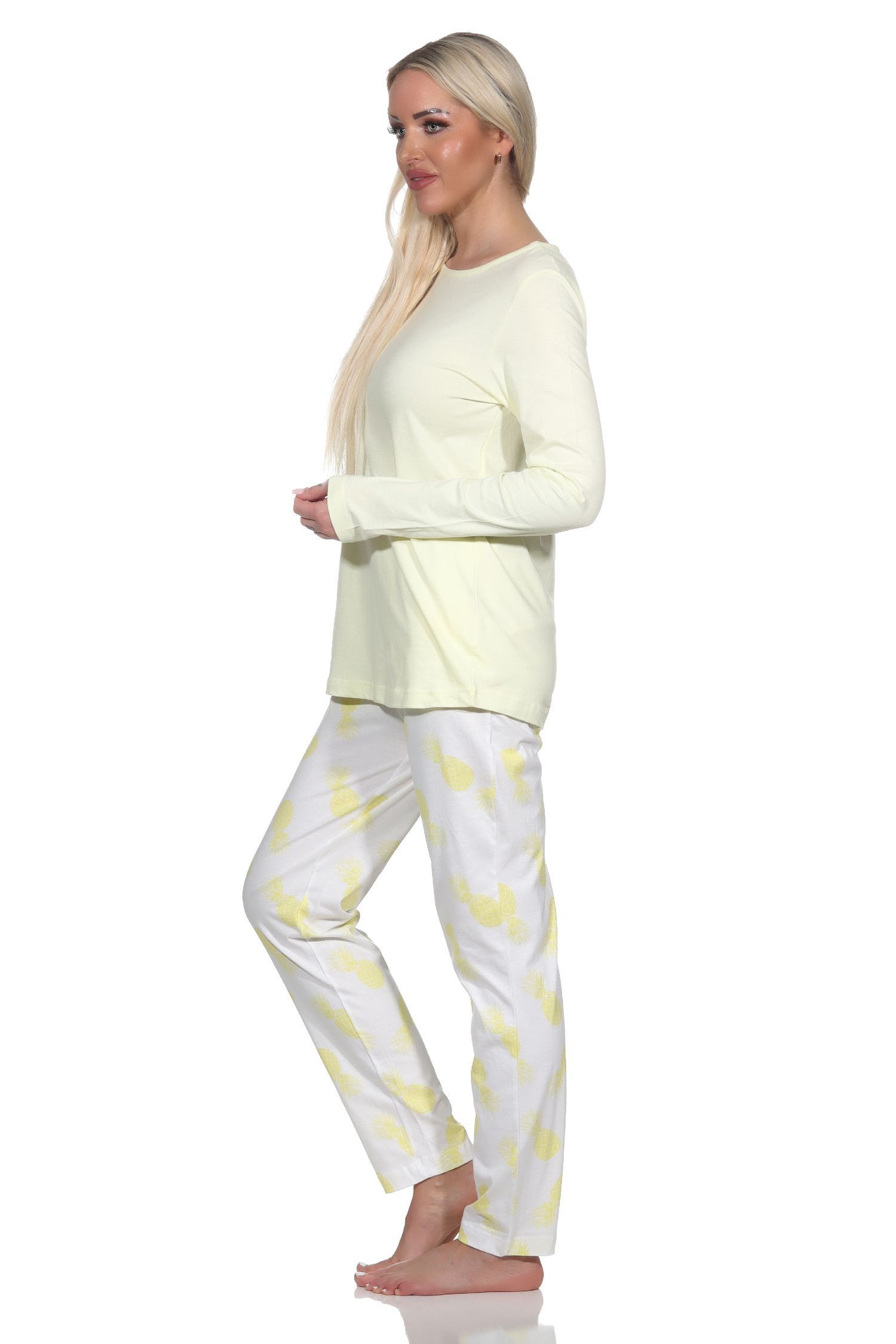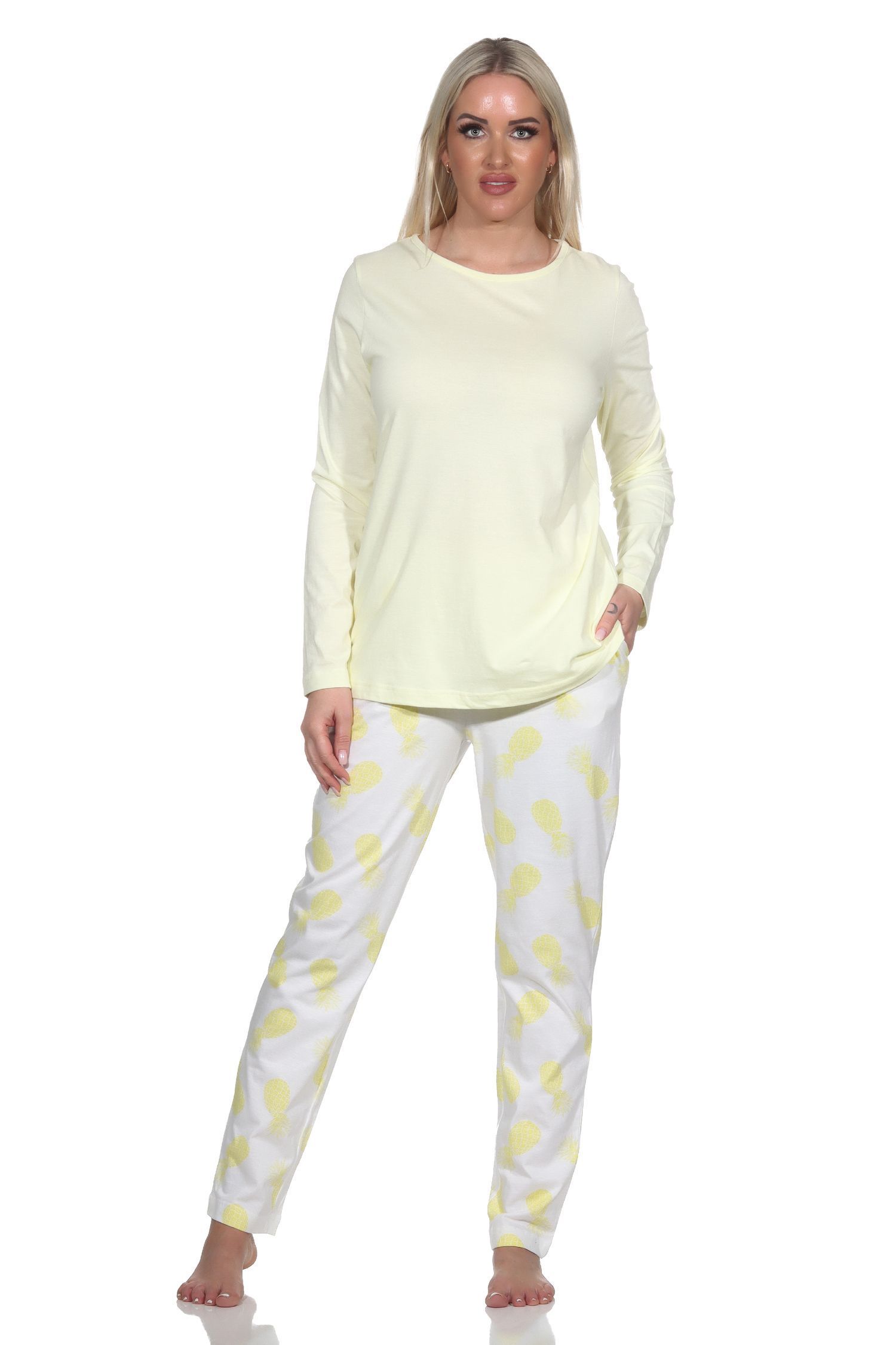 NORMANN Normann Damen Langarm Pyjama Schlafanzug Homewear mit Ananas als Motiv