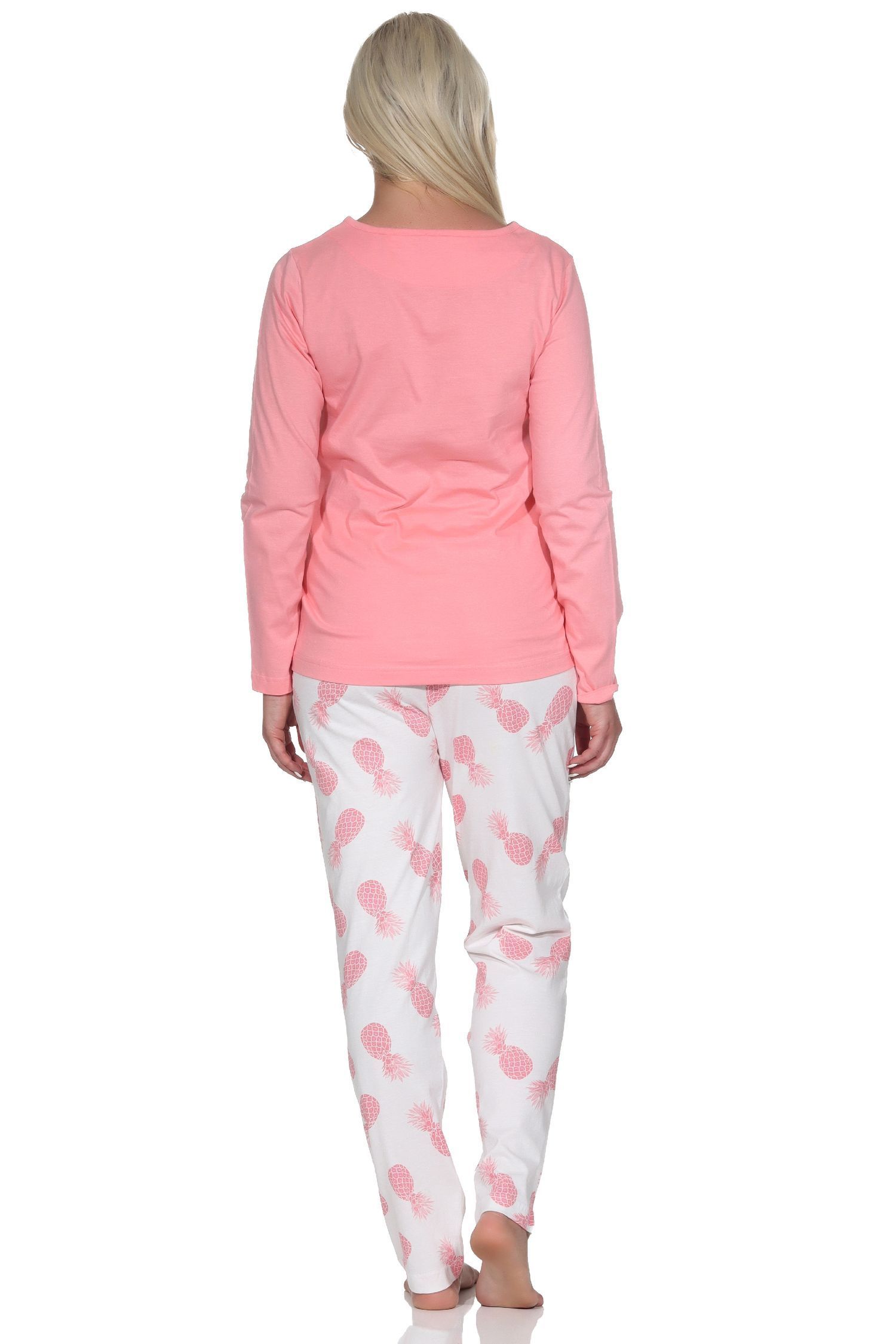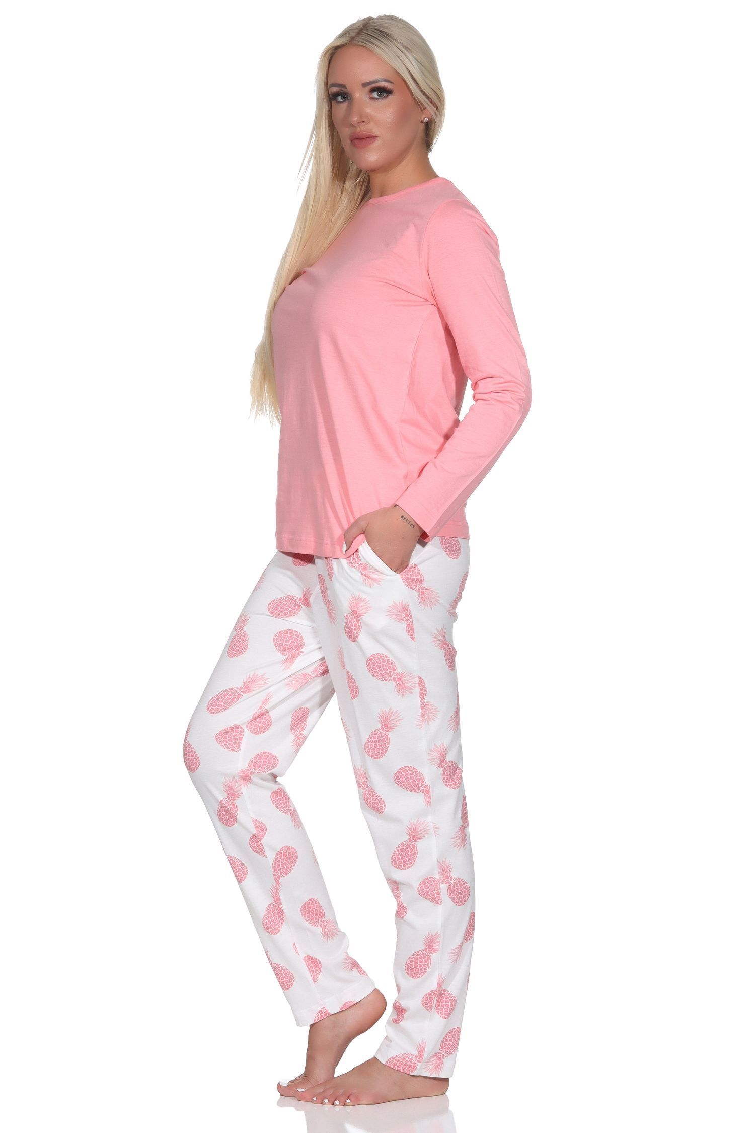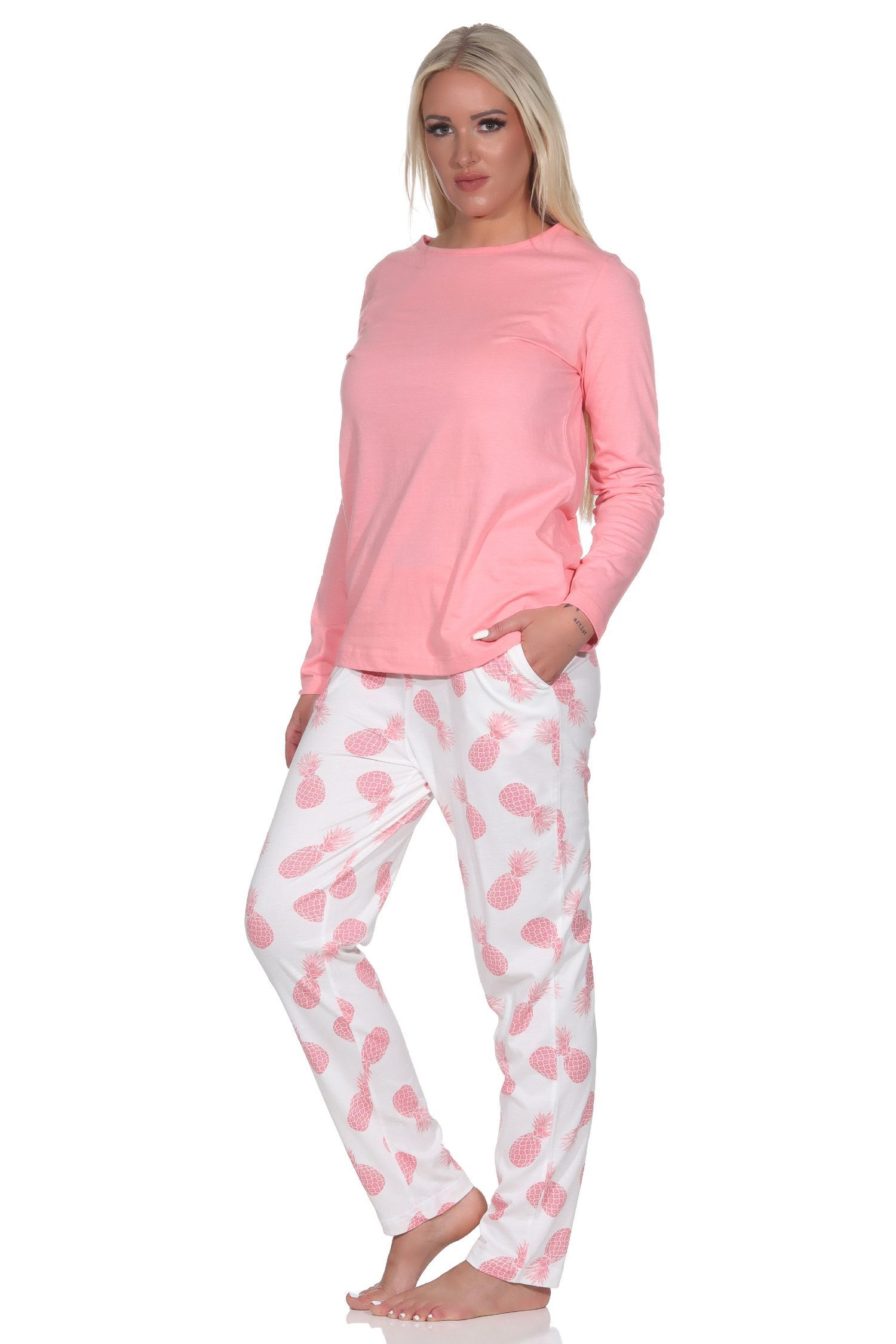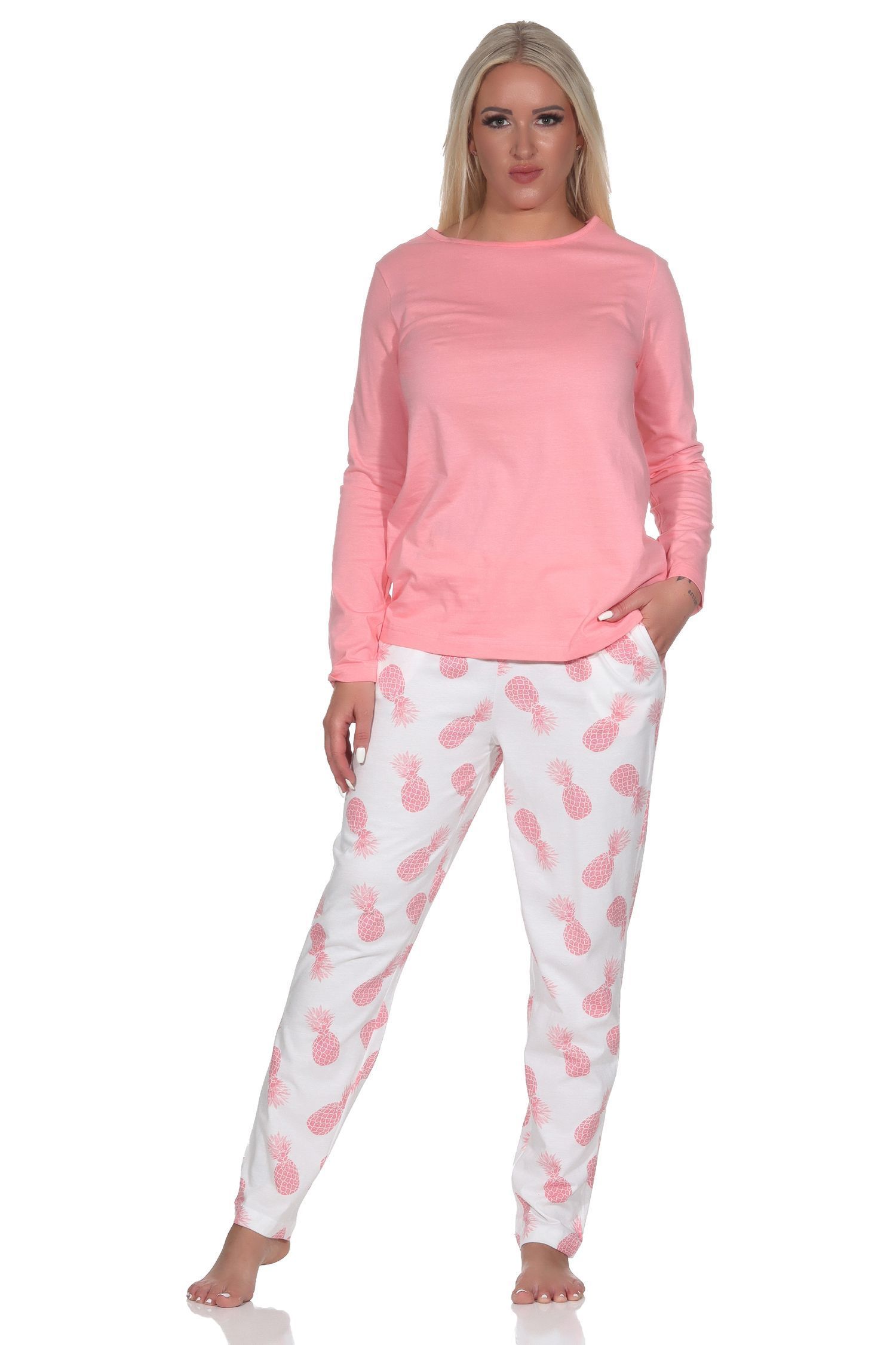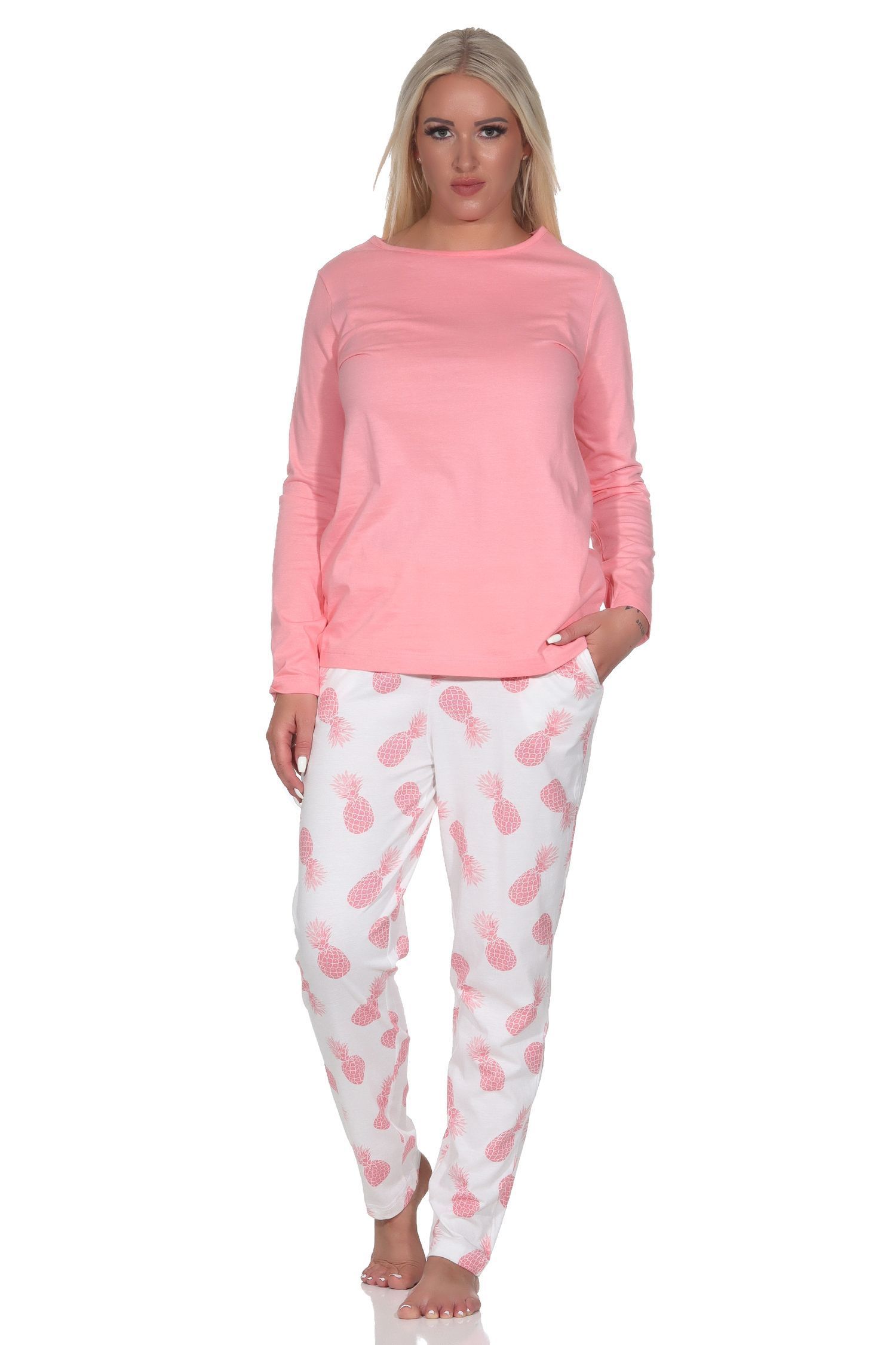 NORMANN Normann Damen Langarm Pyjama Schlafanzug Homewear mit Ananas als Motiv