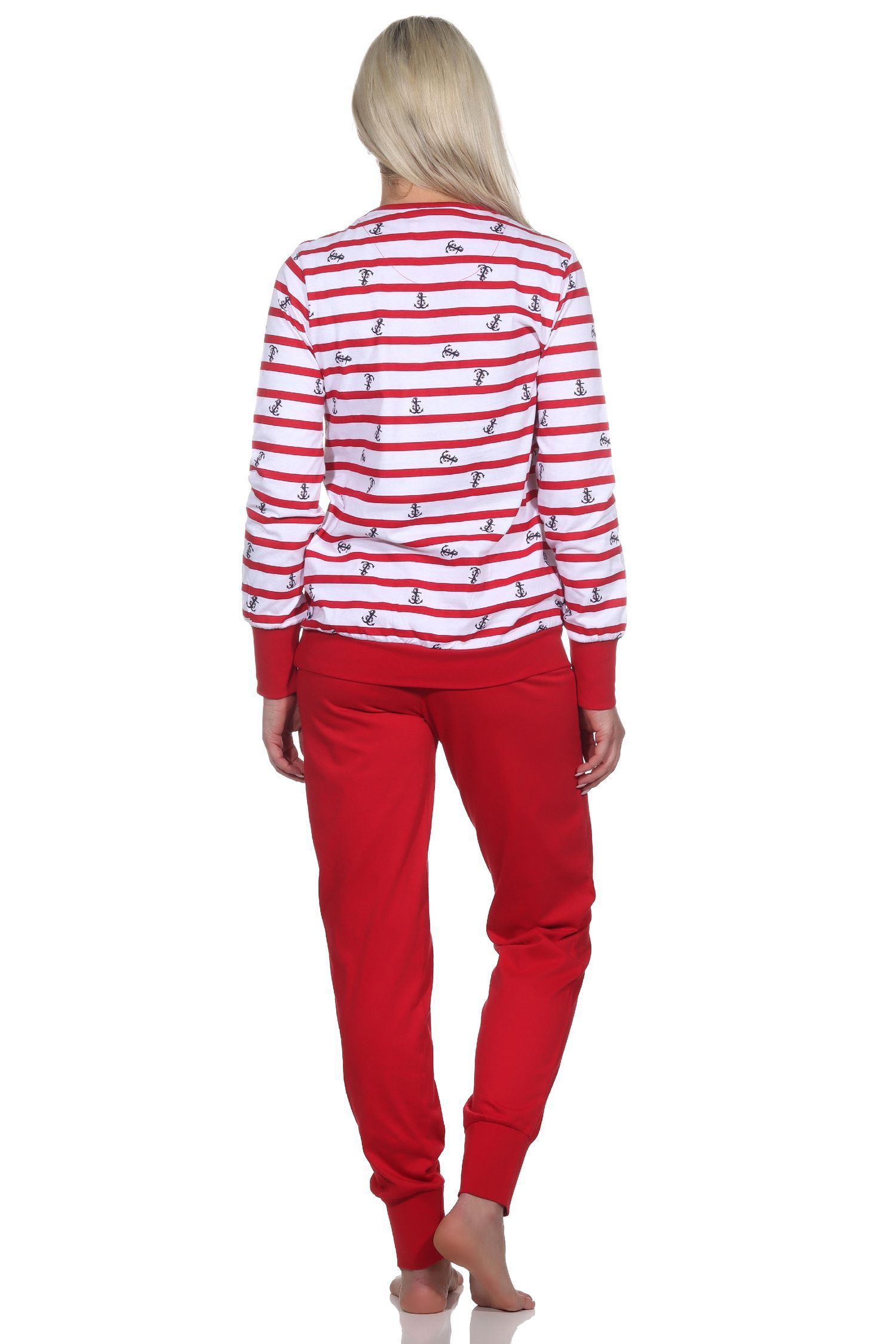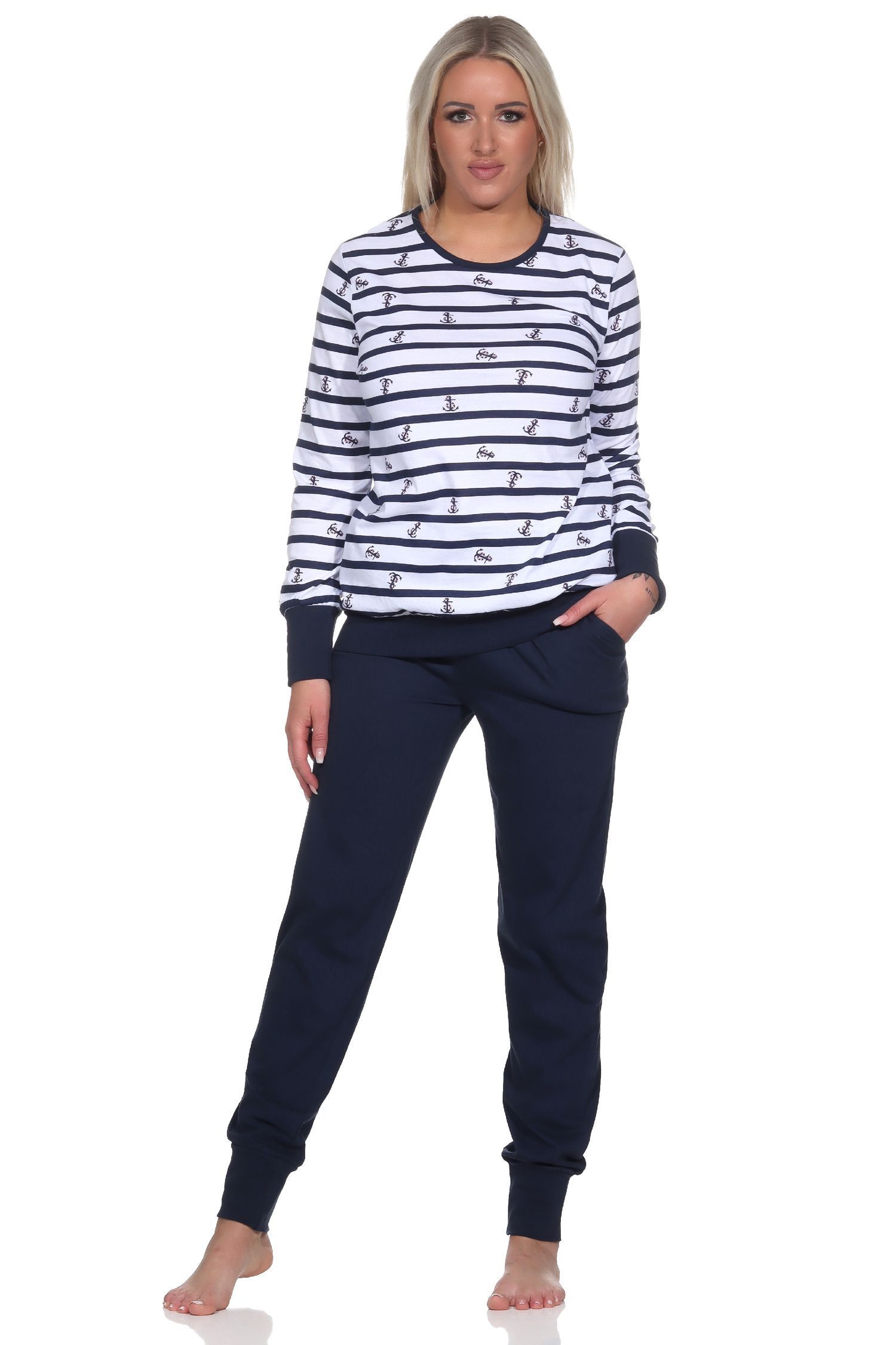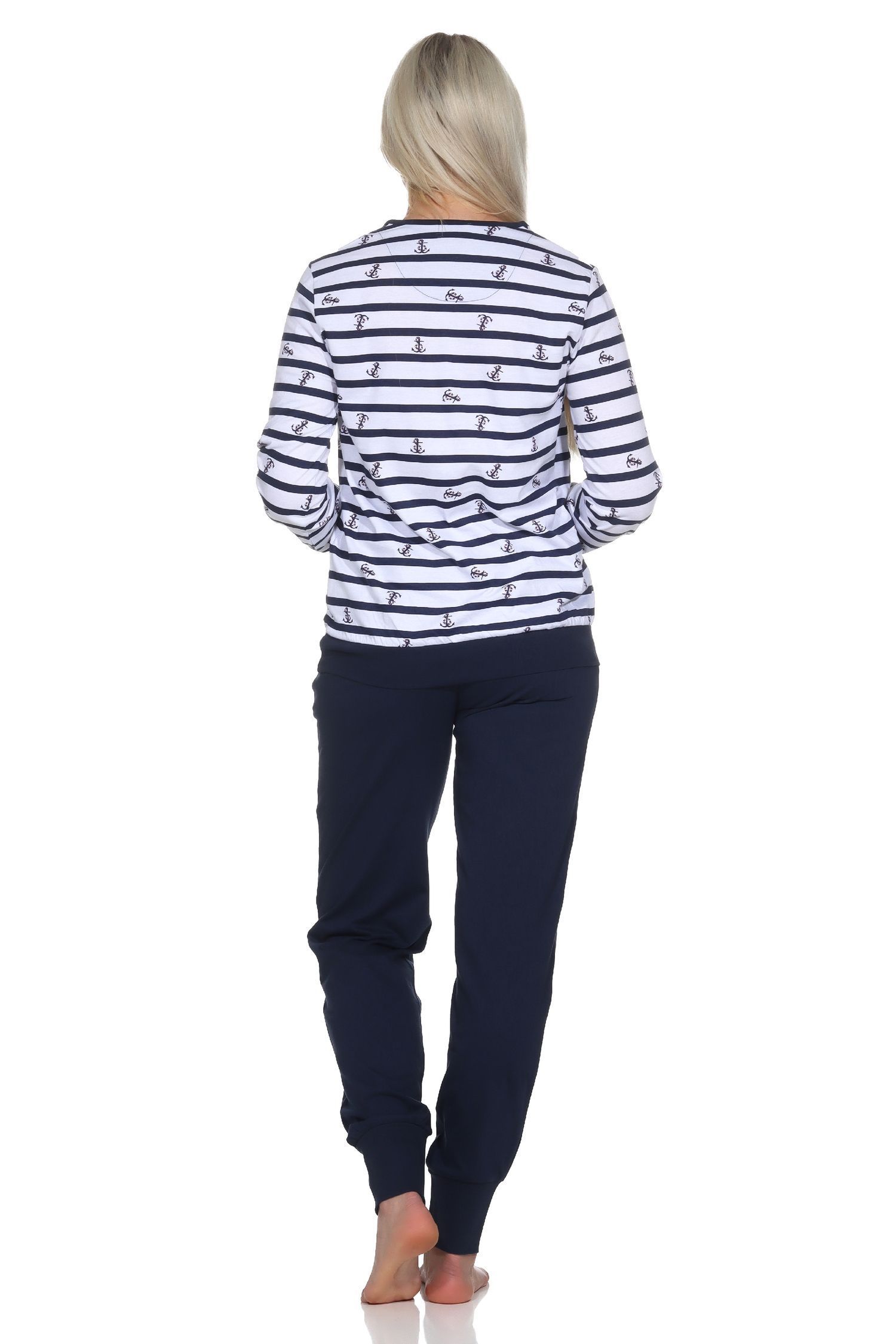 NORMANN Normann Damen Schlafanzug langarm mit Bündchen in maritimer Optik