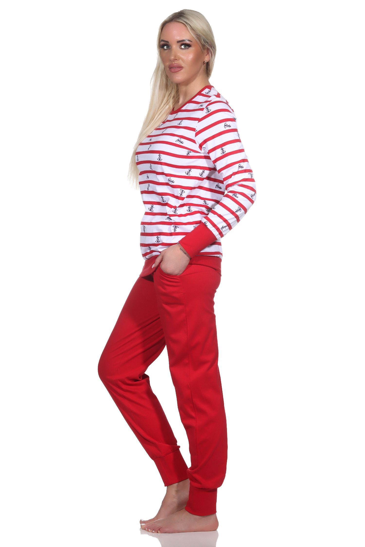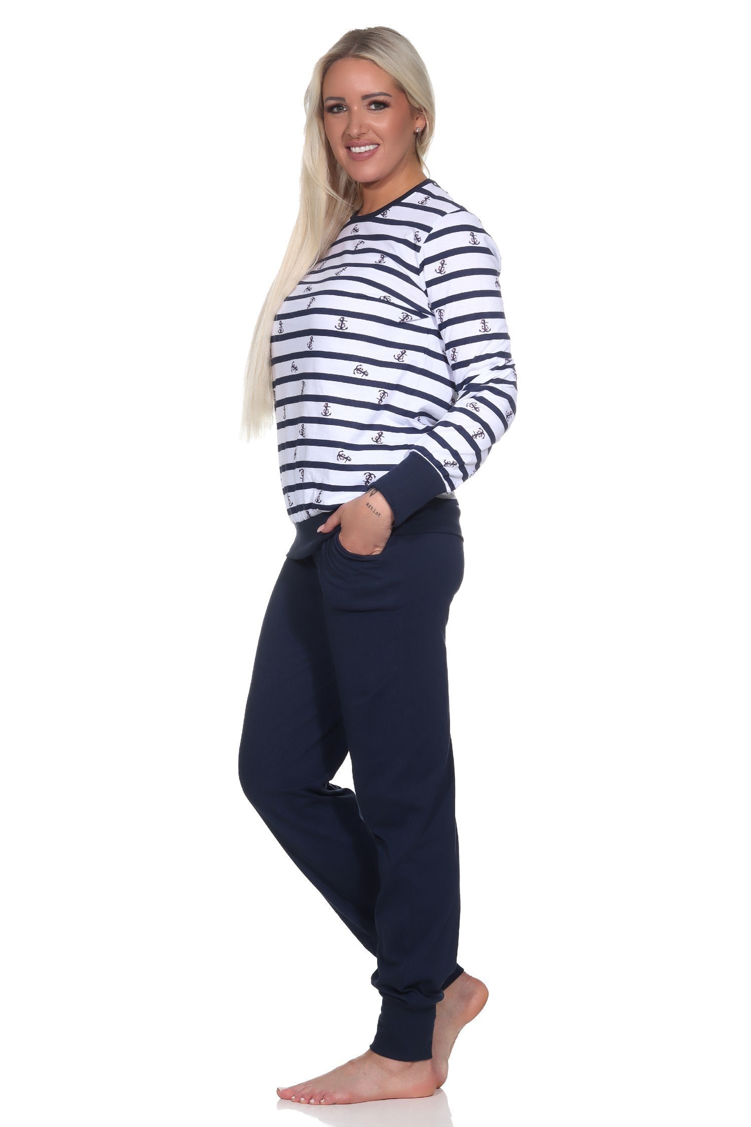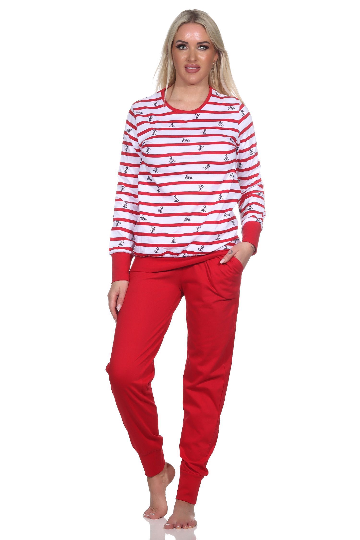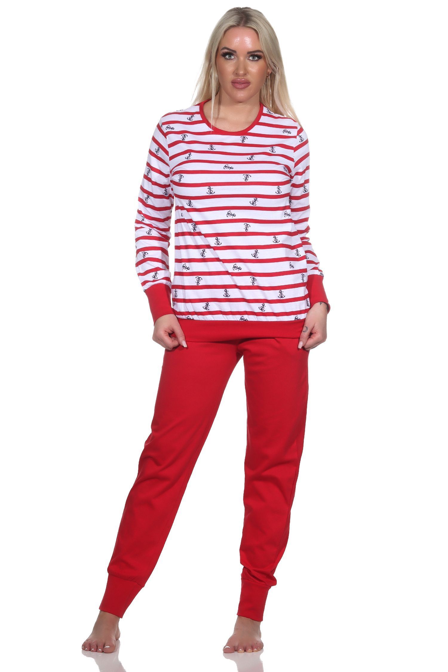 NORMANN Normann Damen Schlafanzug langarm mit Bündchen in maritimer Optik