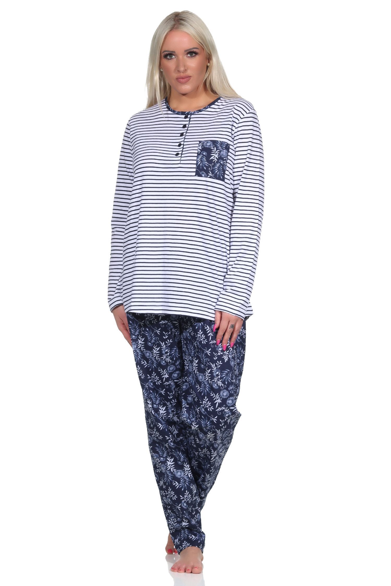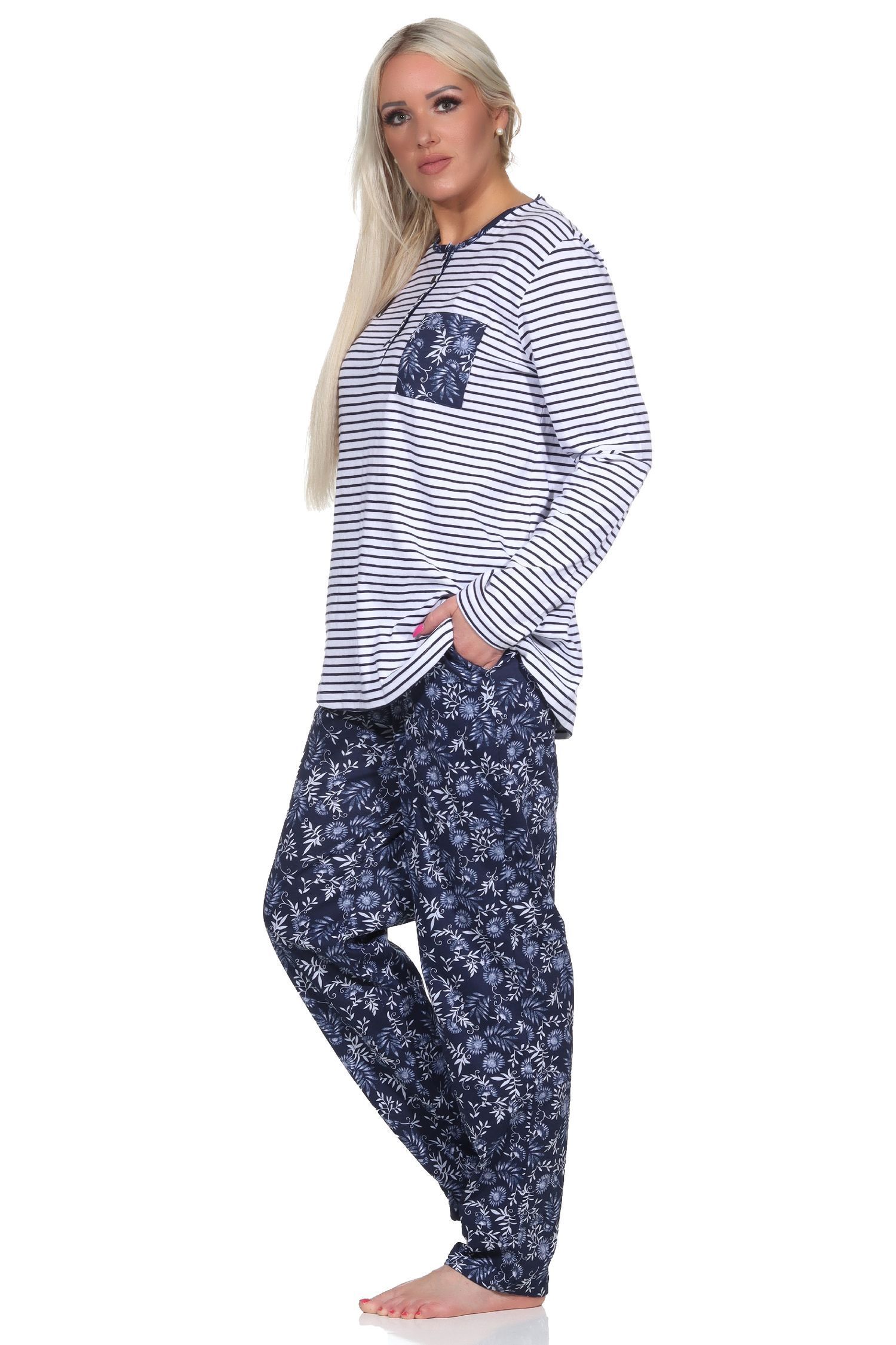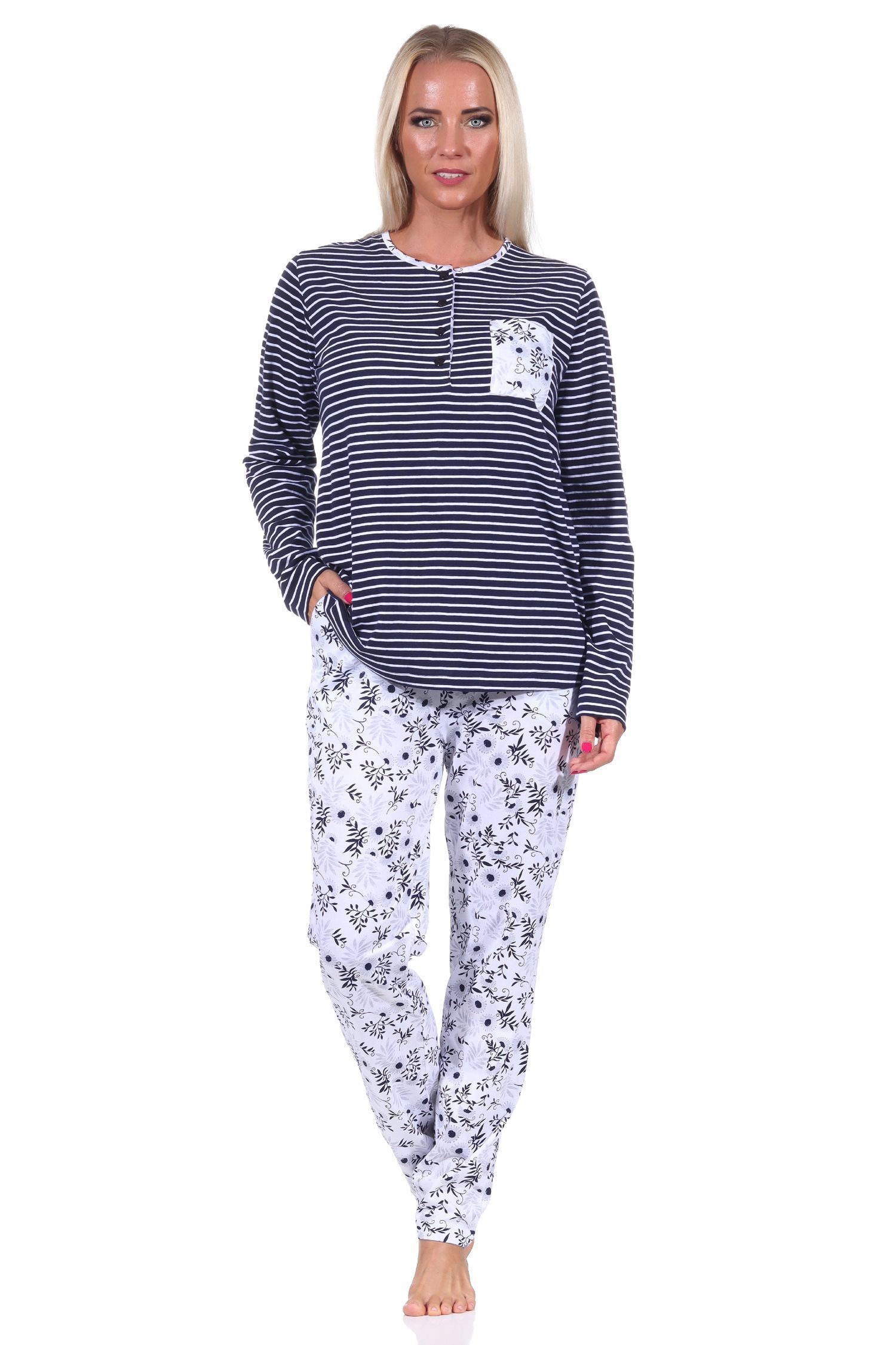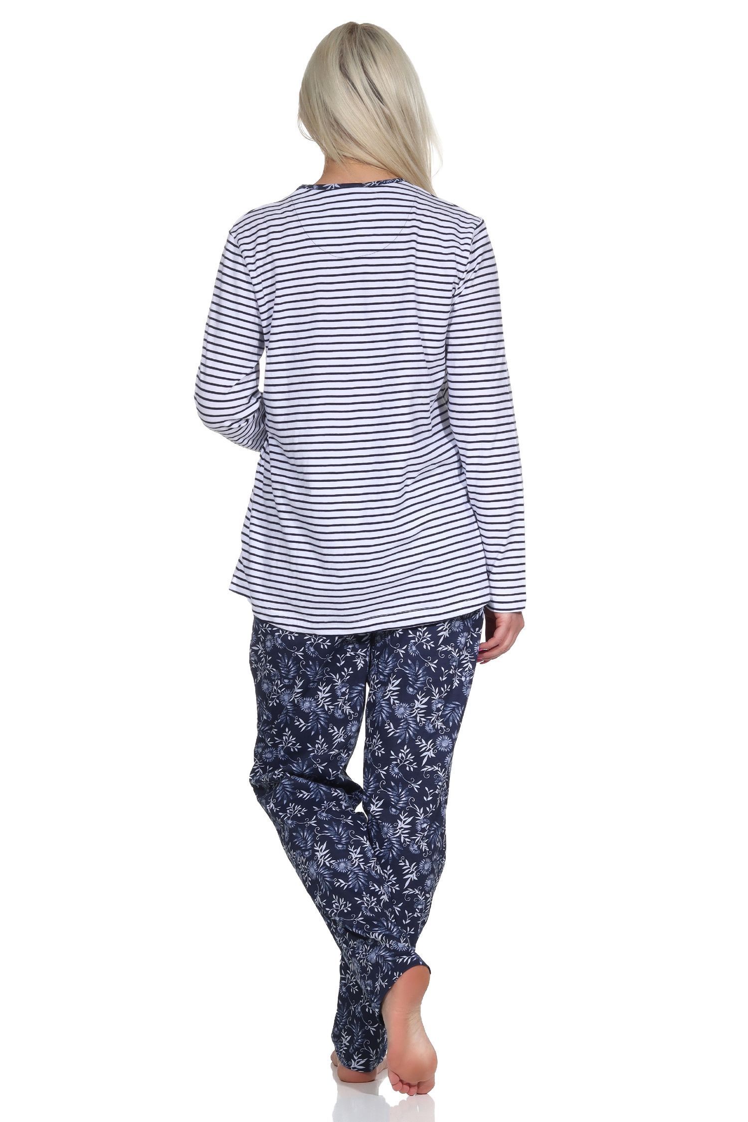 Normann Damen Schlafanzug Pyjama lang, Hose Blümchenmuster - 122 881