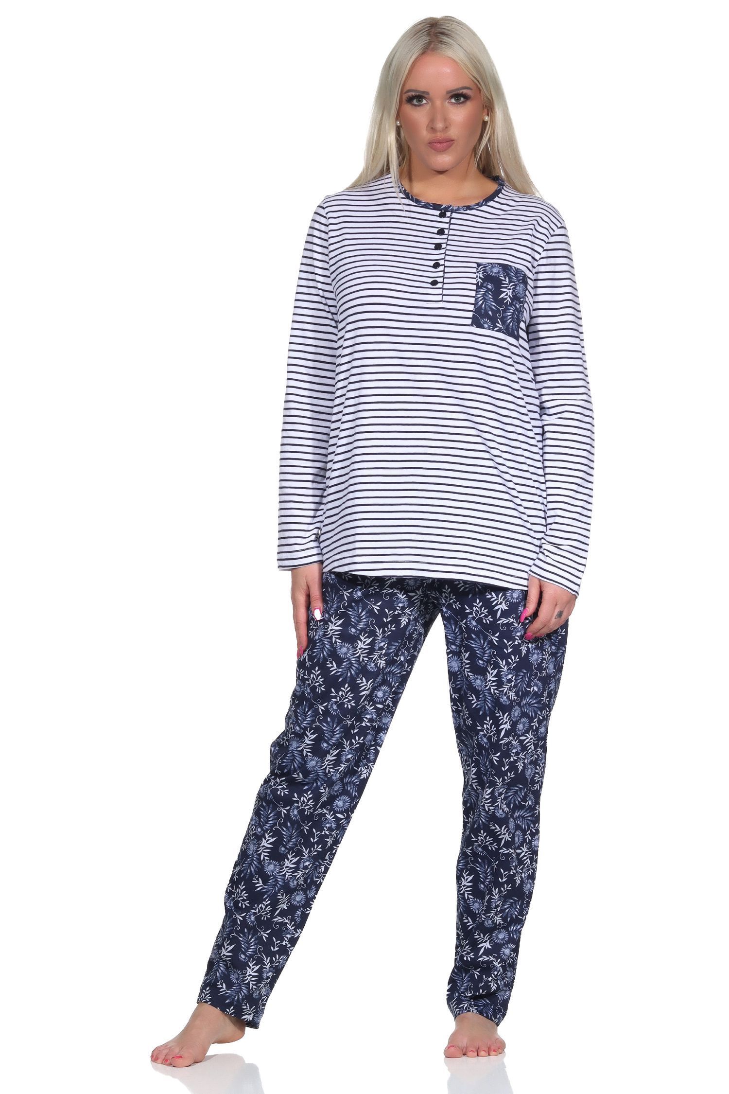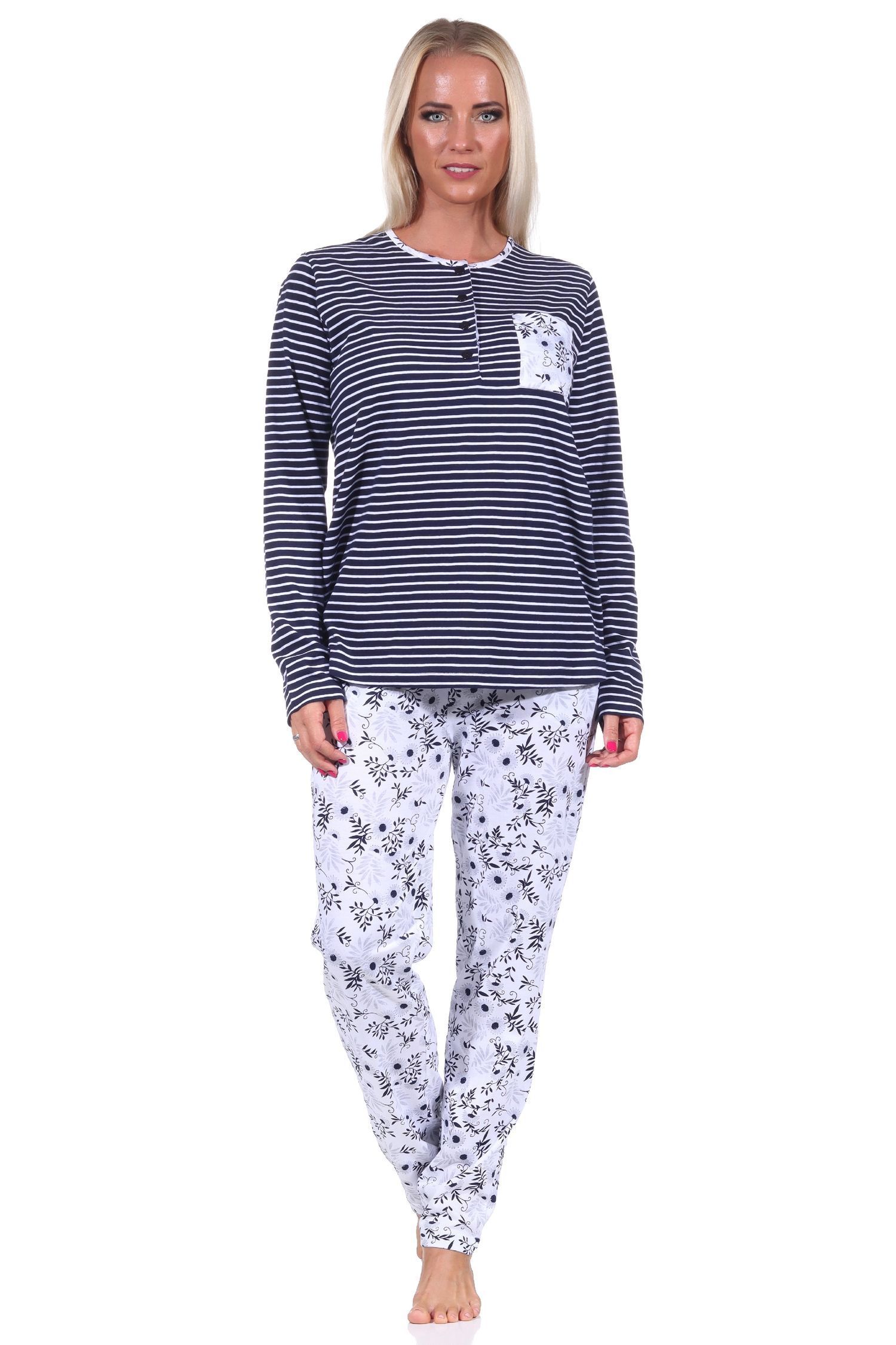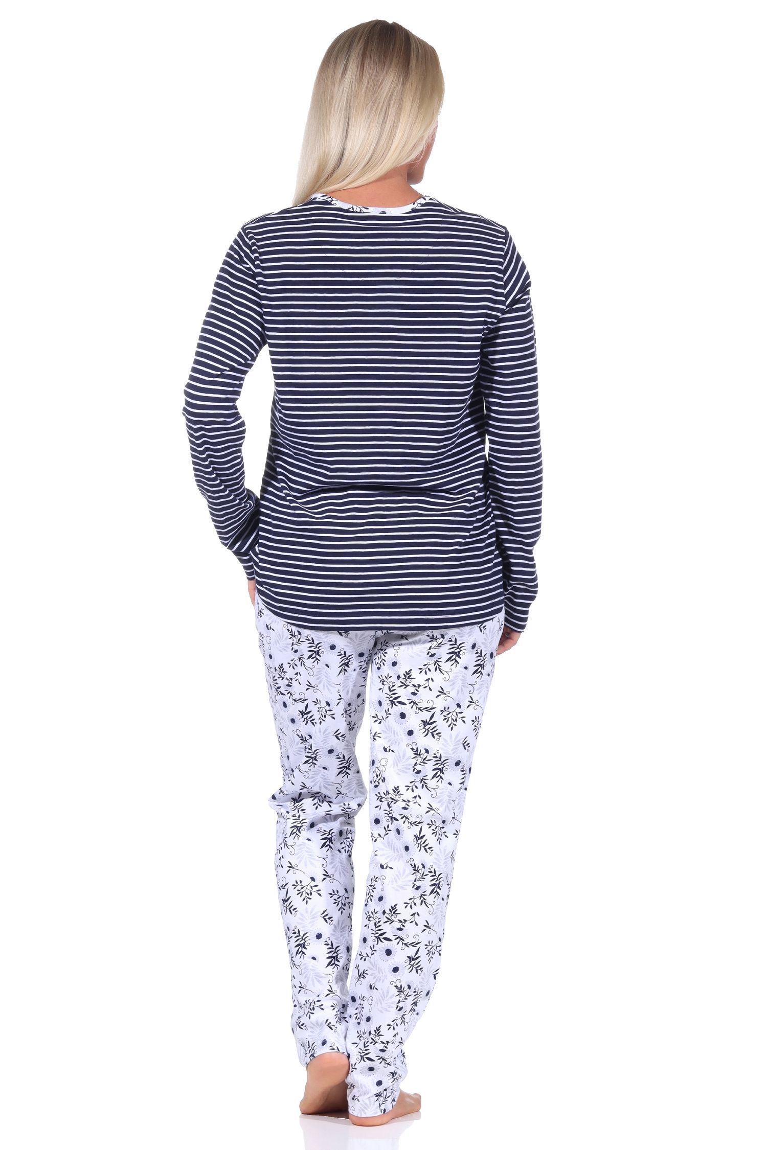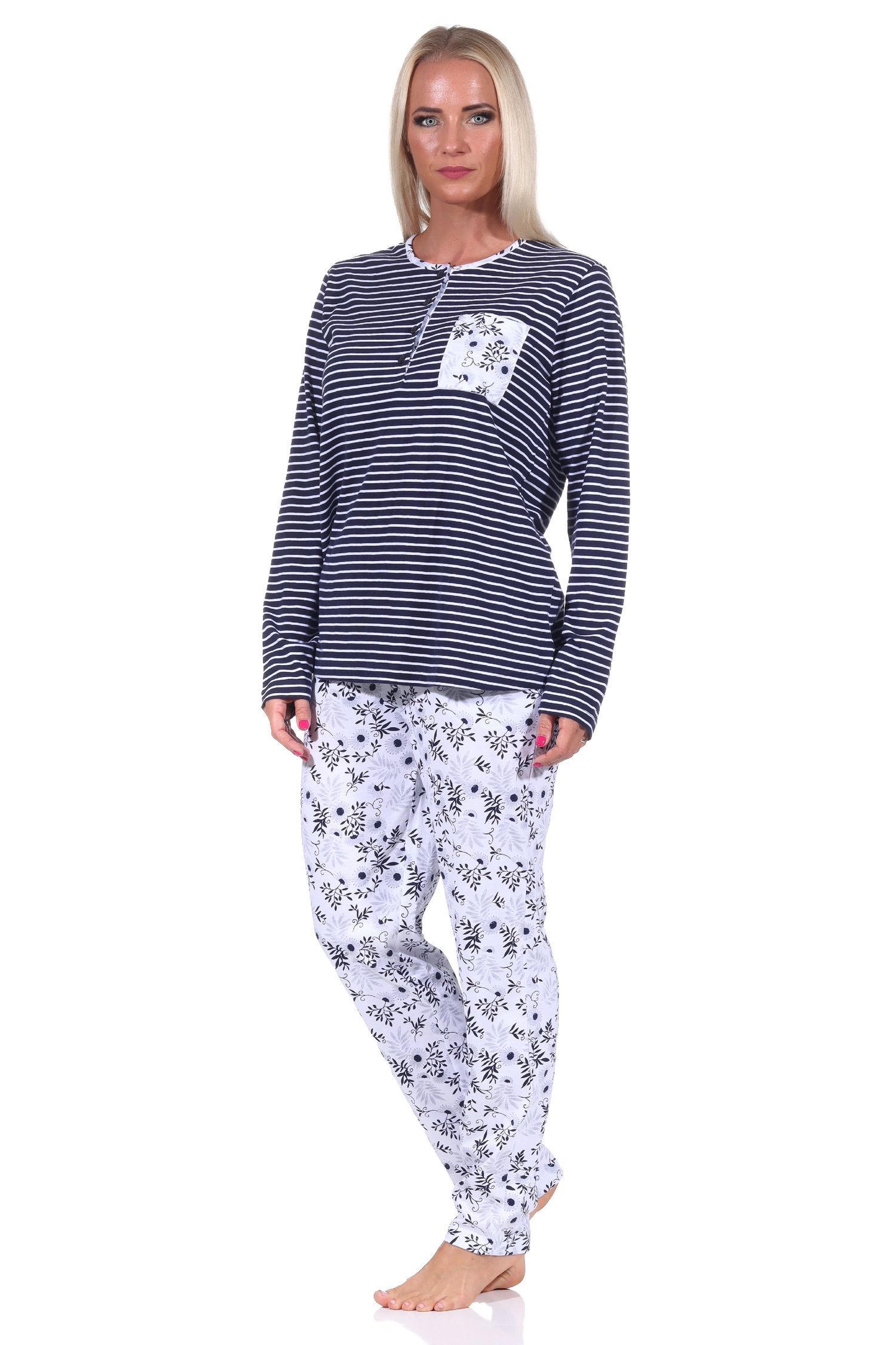 Normann Damen Schlafanzug Pyjama lang, Hose Blümchenmuster - 122 881