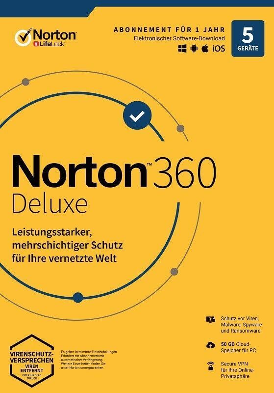 NORTON 360 DELUXE 2025 5 Geräte / 1 Jahr inkl. 50GB, KEIN ABO, Download