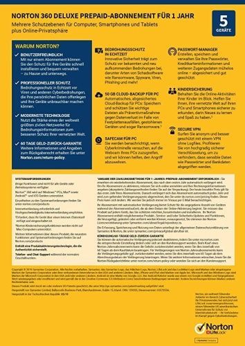 Symantec Norton 360 Deluxe, 50 GB Cloud-Backup, 5 Geräte 1 Jahr KEIN ABO