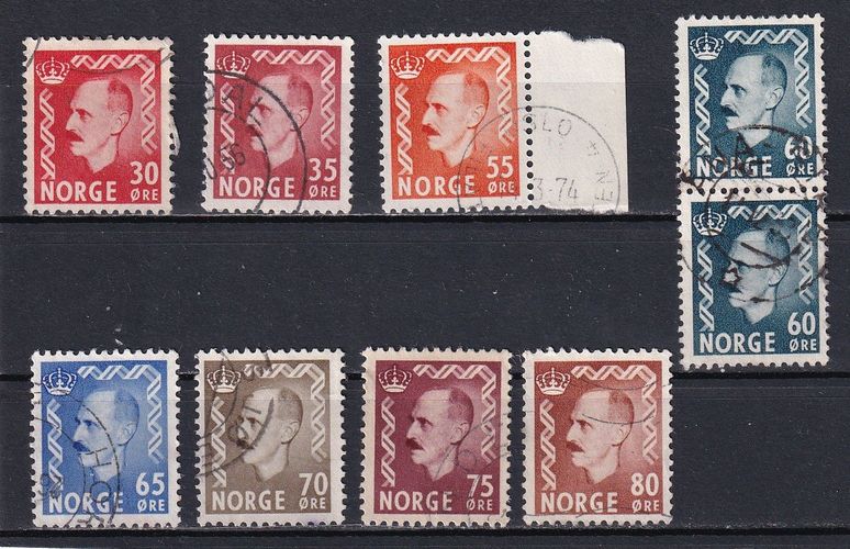 Norwegen, ab 1950, König, 9 Briefm., davon 1 Paar, gest