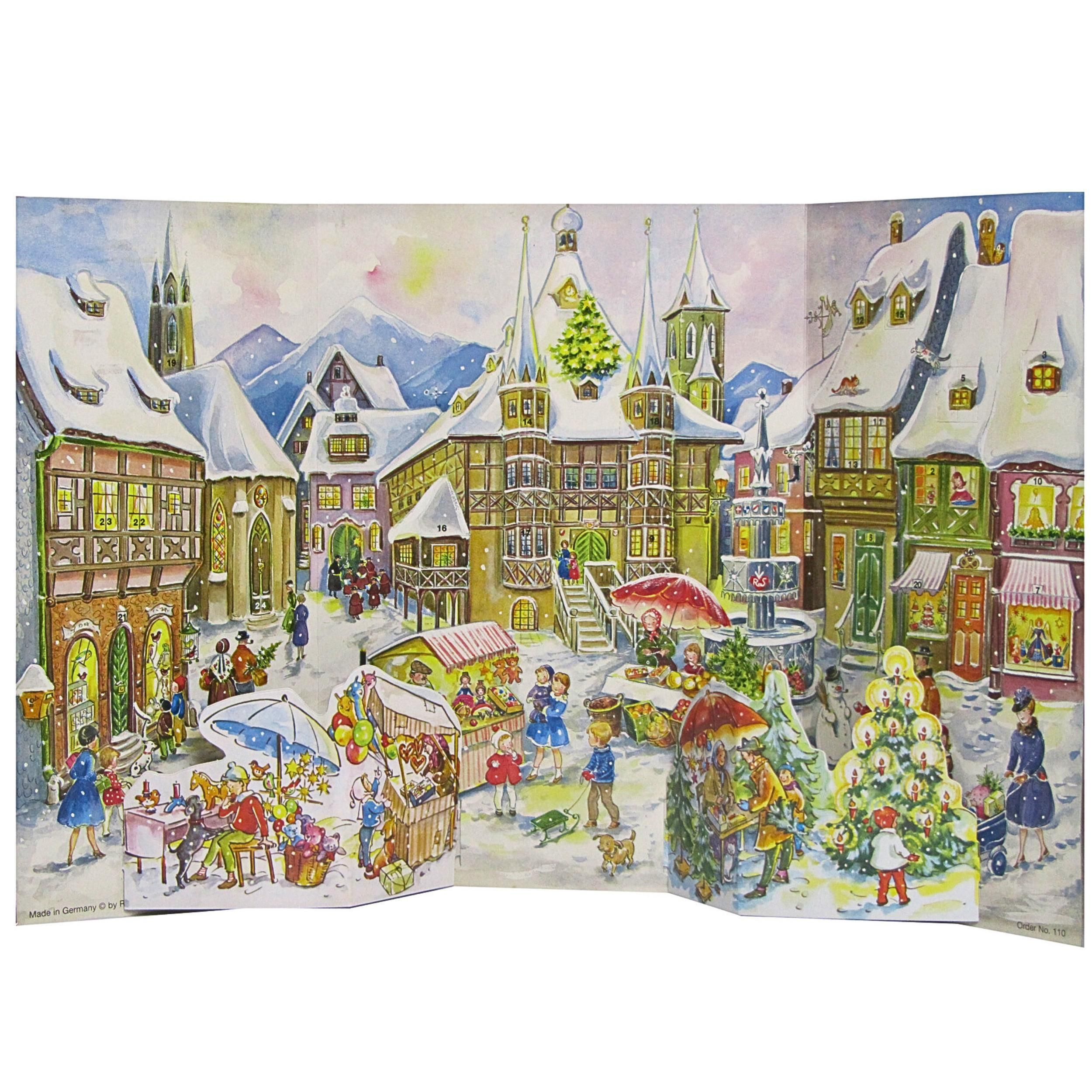 Nostalgischer Adventskalender aus Papier mit aufstellbarer Kulisse – Winterliche