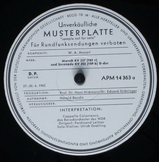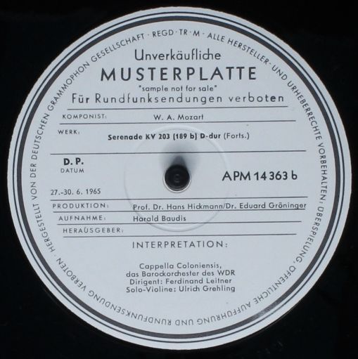 Condition Vinyl Near Mint (NM or M-) Condition Sleeve Not Graded Tracks included: I 1. Marsch KV 237 Composed By : Wolfgang Amadeus Mozart 2. Serenade KV 203 Composed By : Wolfgang Amadeus Mozart II Serenade KV 203 D-Dur (Fortsetzung)