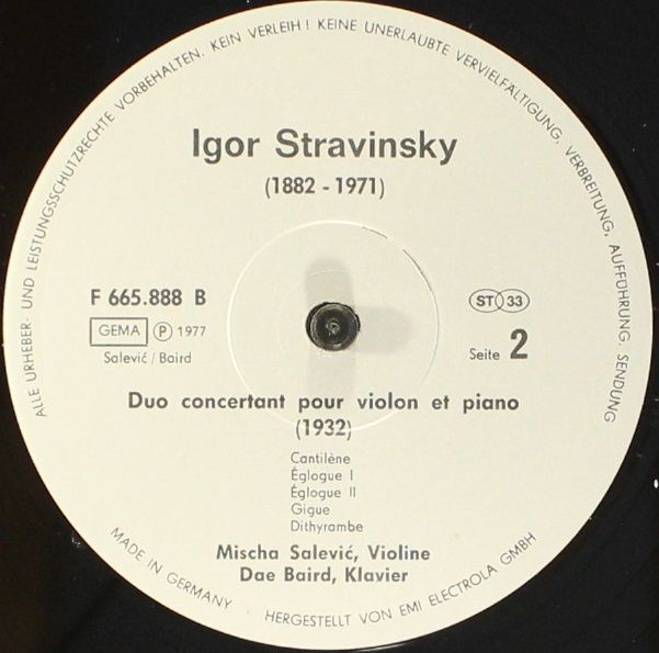Condition Vinyl Near Mint (NM or M-) Condition Sleeve Near Mint (NM or M-) Tracks included: Sonate C-Moll, Op. 30 Composed By : Ludwig van Beethoven I 1. > Allegro Con Brio 2. > Adagio Cantabile 3. > Finale: Allegro Duo Concertant Composed By : Igor Stravinsky II 1. > Cantilène 2.