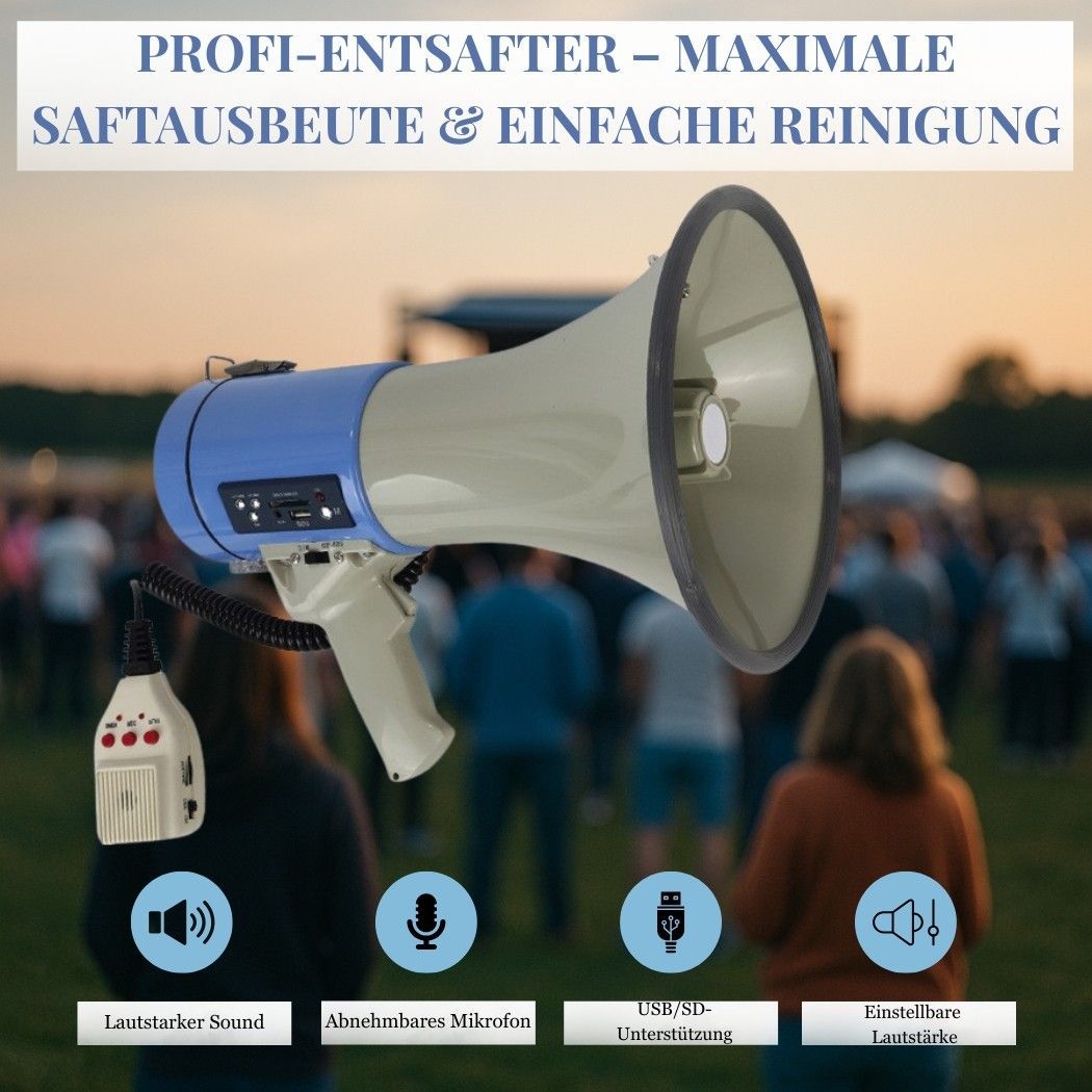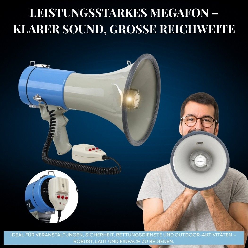 Professioneller 12V Megafon-Handlautsprecher – Laut, klar & zuverlässig Leistungsstarkes Megafon für Notfälle, Veranstaltungen, Sicherheitsdienste und Outdoor-Aktivitäten. Mit abnehmbarem Mikrofon, einstellbarer Lautstärke und Unterstützung für USB SD-Wiedergabe – ideal, um auch in großen Bereichen