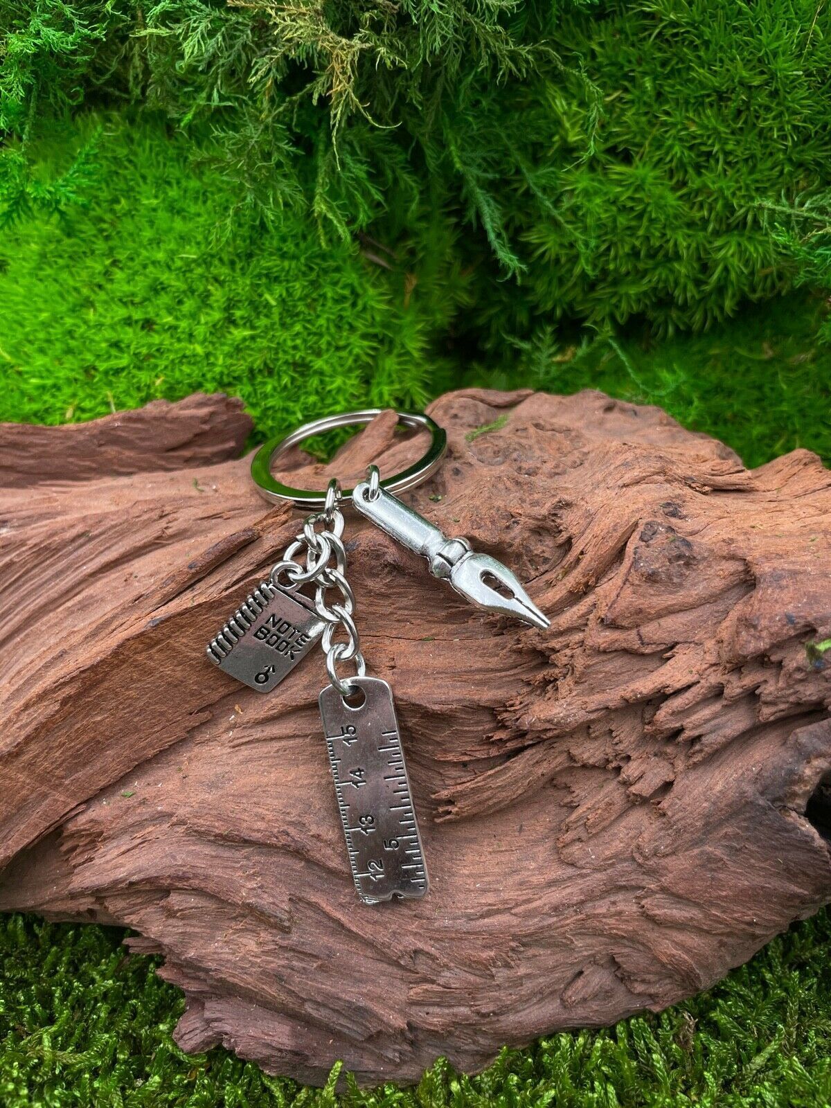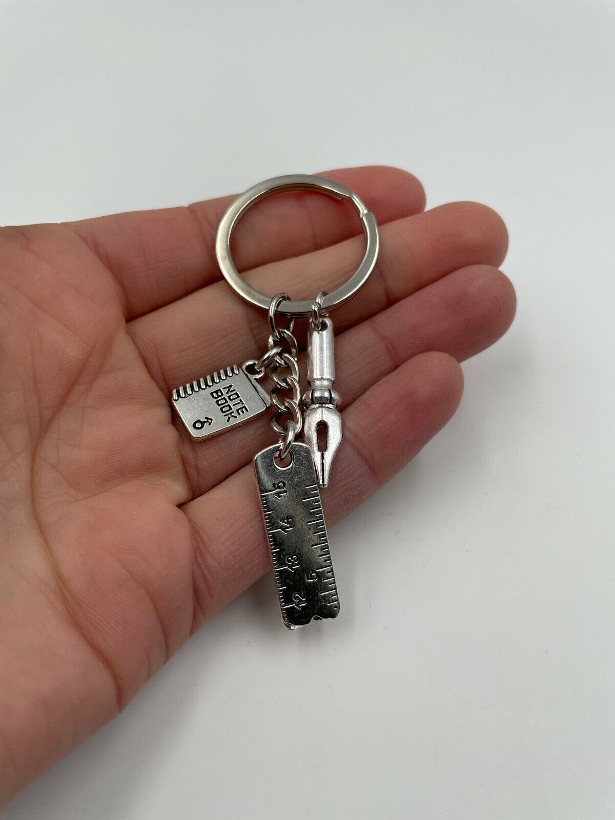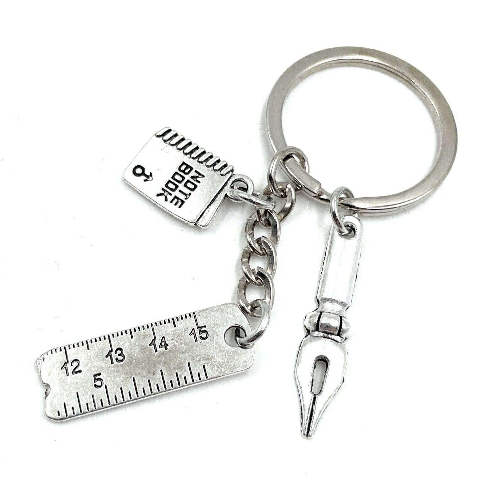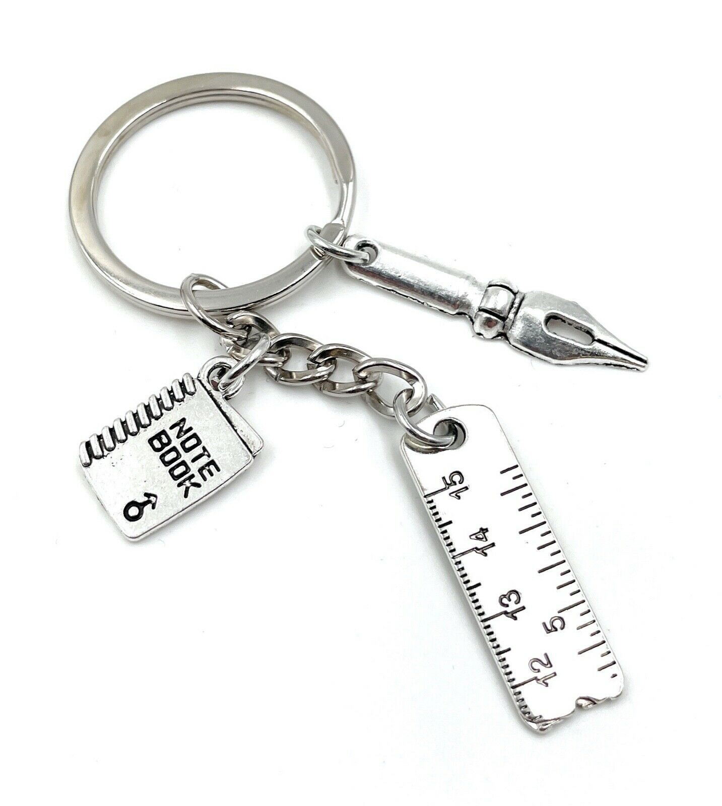 Notiz Buch Füller Lineal Schule Schlüsselanhänger aus Metall Glücksbringer