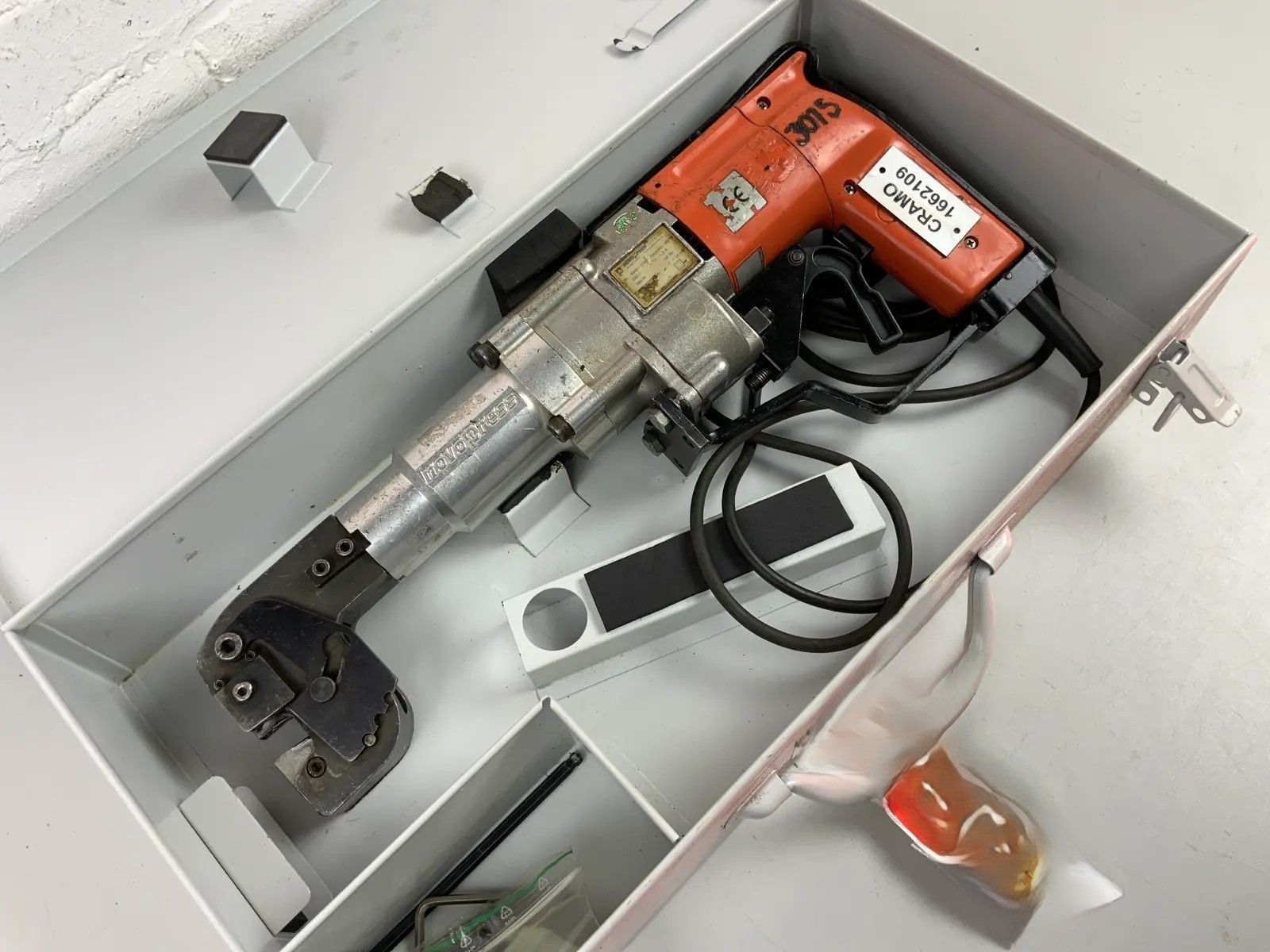 Novapress EMC 10 Elektrischer Baustahlschneider (65) DC gebraucht voll funktionsfähig gereinigt ist im Originalzustand, CE geprüft geliefert wie auf den Fotos zu sehen ist, kein weiteres Zubehör soweit es Fehler oder Defekte gibt wären die oben beschrieben und Blau gekennzeichnet Nach erhalt des Ger