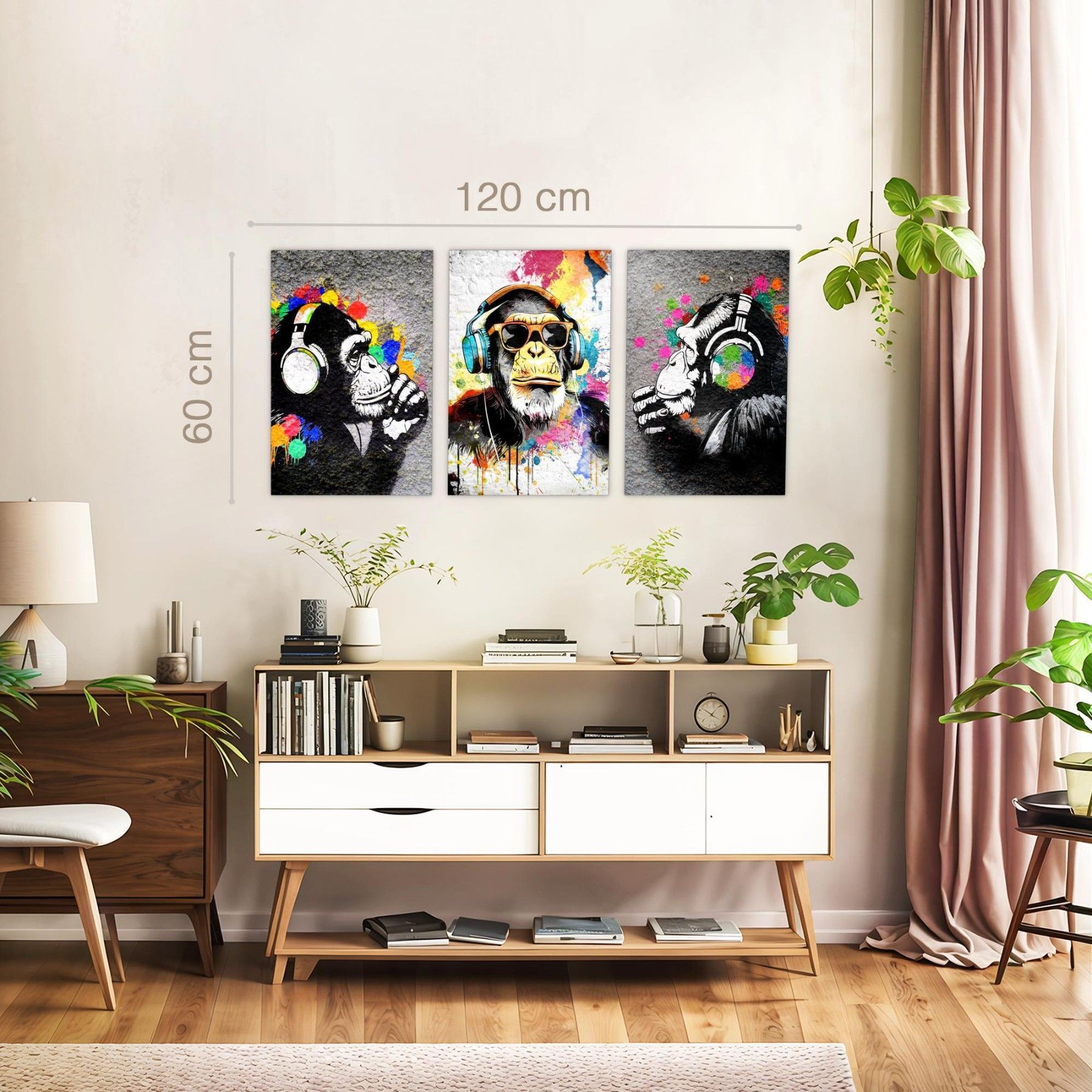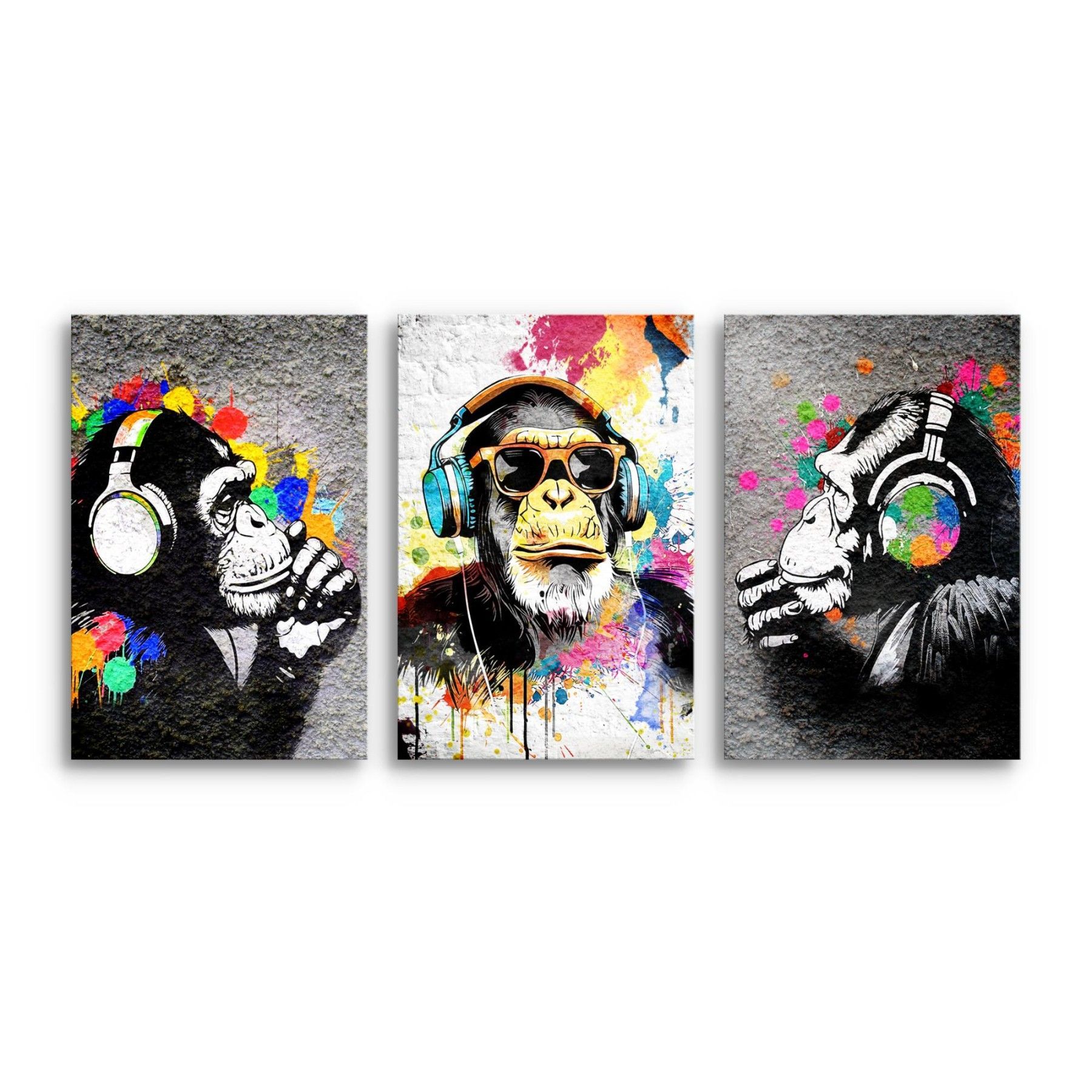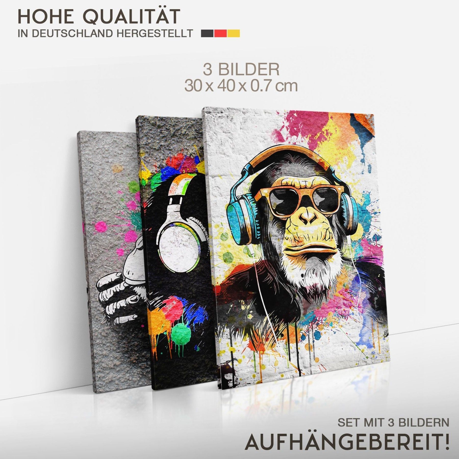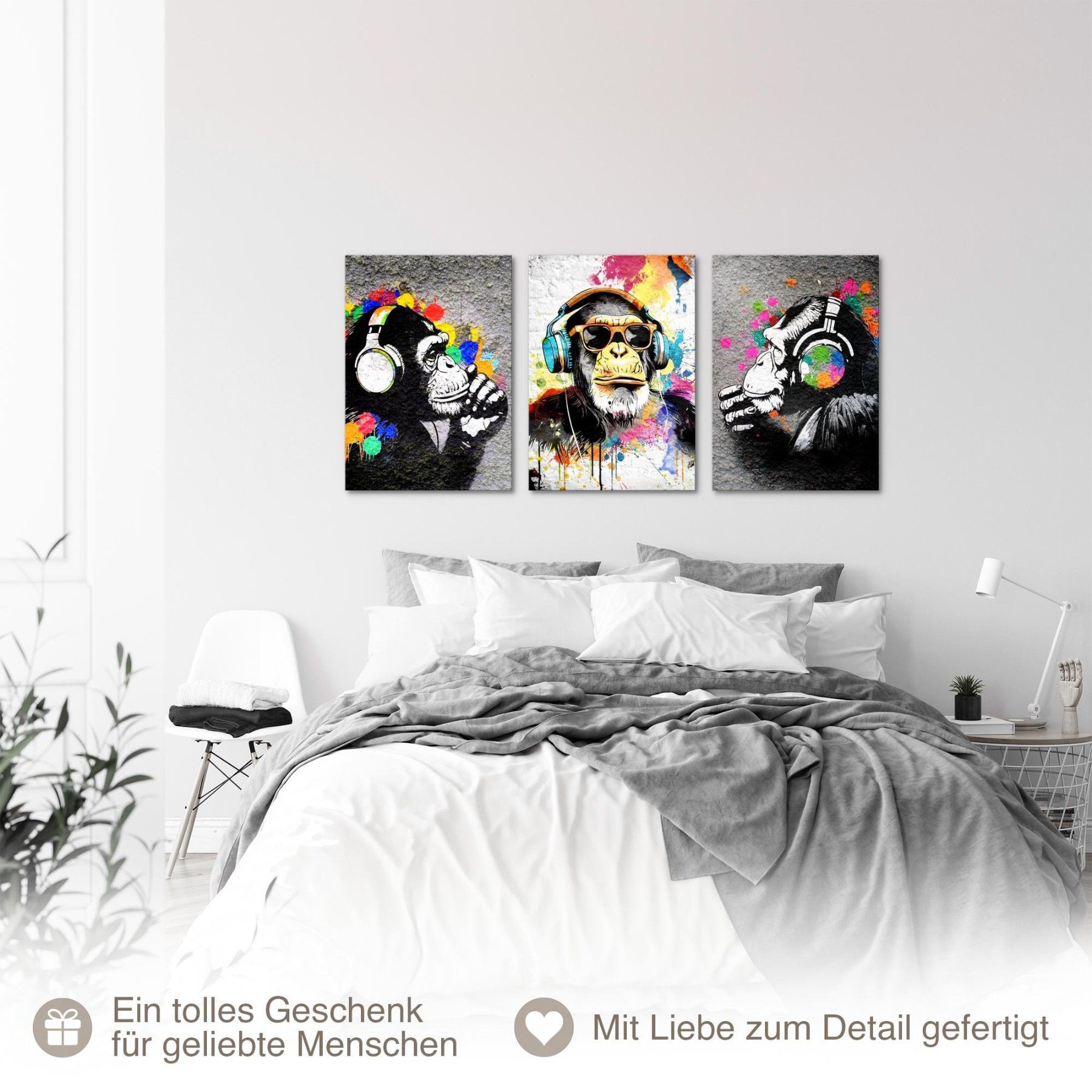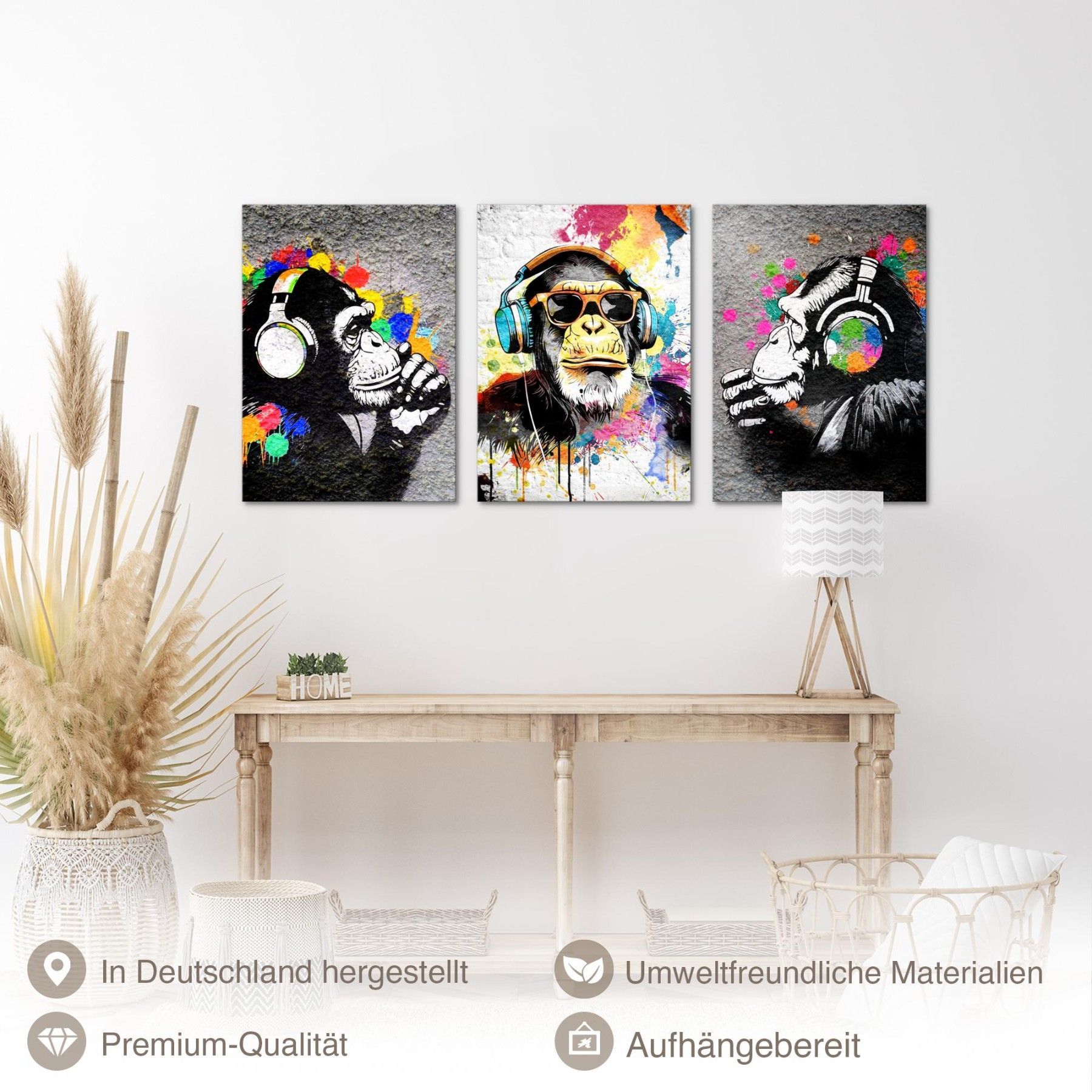 Novart Wandbilder Affe Banksy Style Graffiti Komplett Aufhängfertig Loft