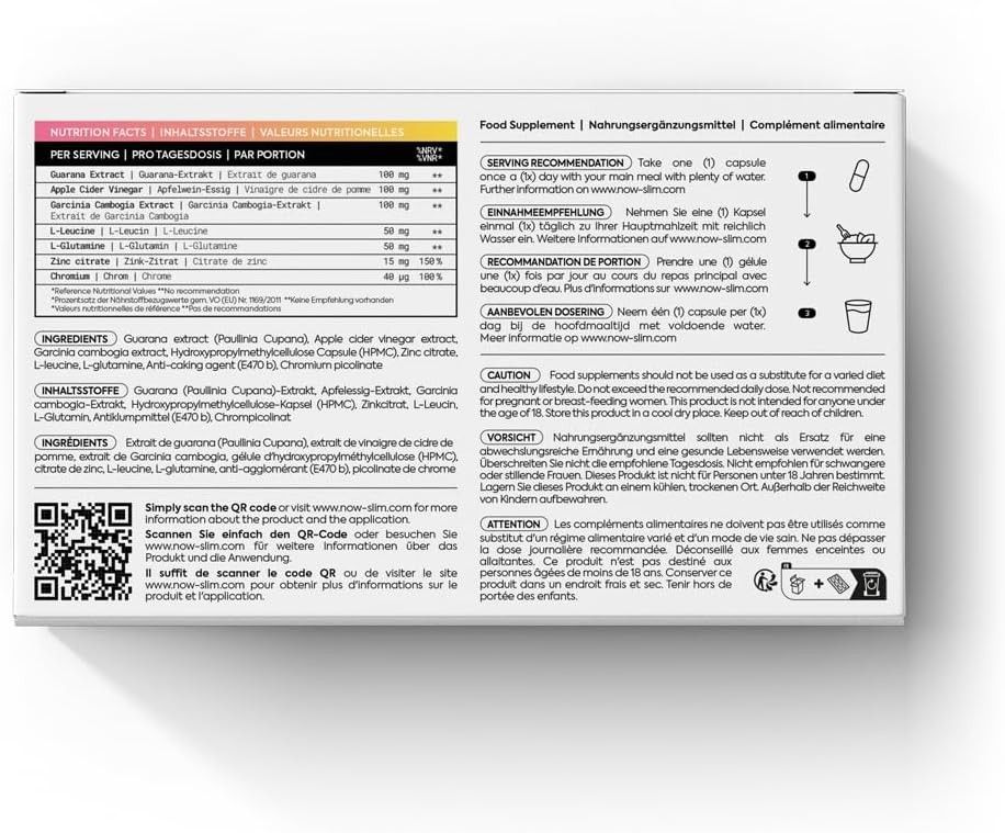 NOW SLIM Unterstützung des Makronährstoffstoffwechsels mit Guarana-Extrakt, Apfelessig und Garcinia Cambogia Caltriva für die Körperunterstützung, 30 Kapseln.