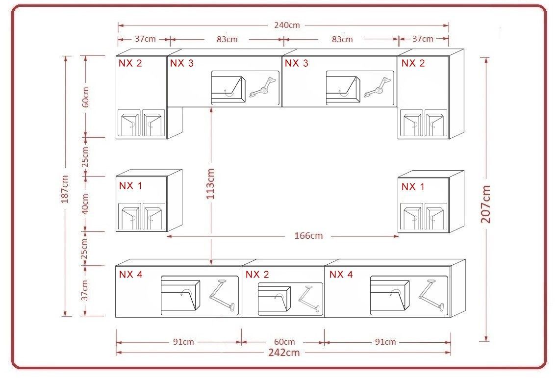 Nowara NX 1 Möbel für Wohnzimmer Wohnwand Mediawand Schrankwand Wohnschrank Weiß