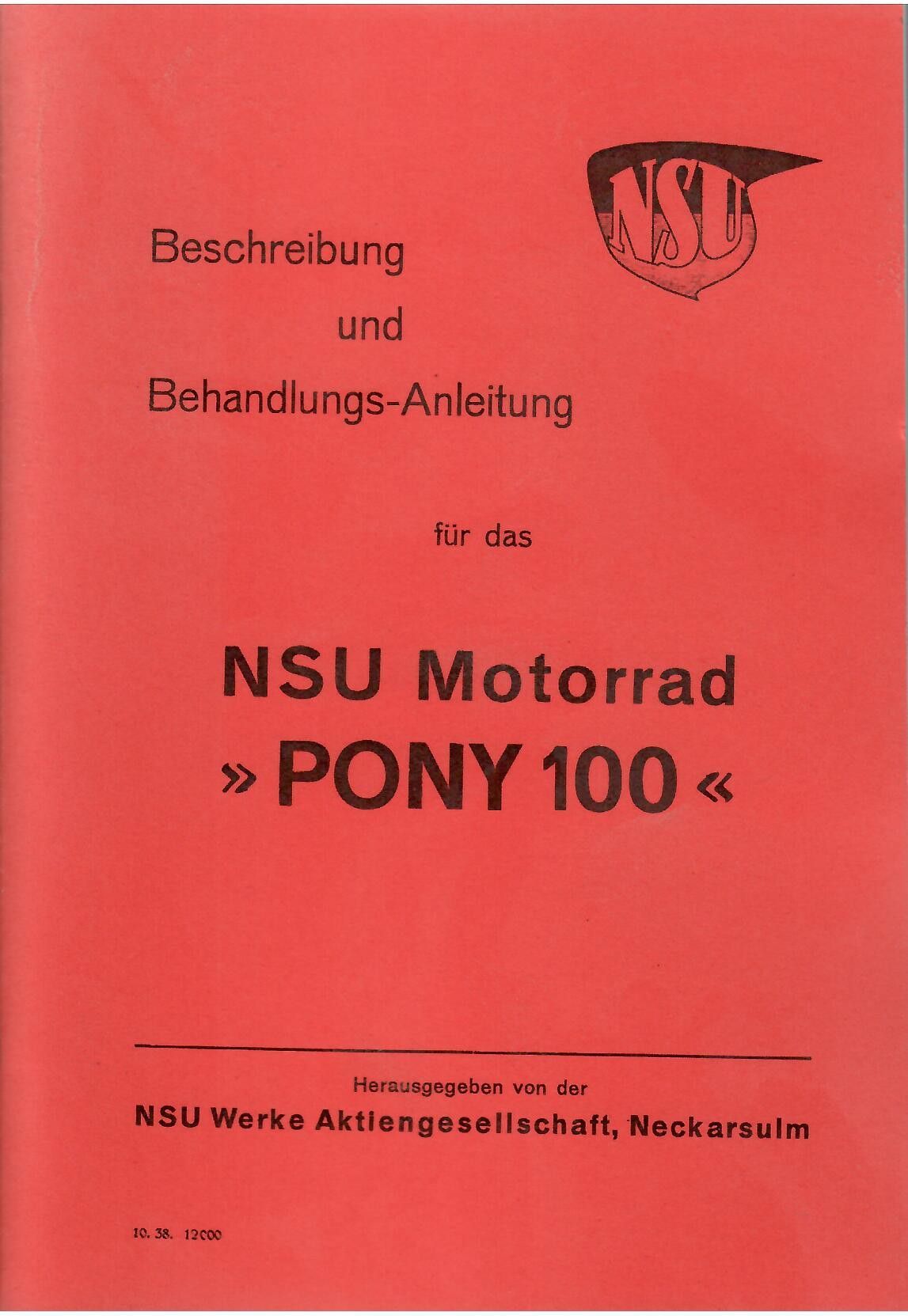 NSU Ponny 100 Bedienungsanleitung, Motorrad, Oldtimer