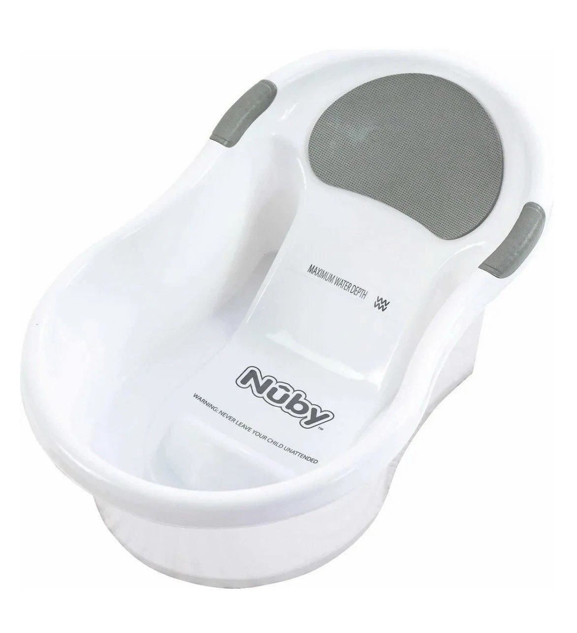 Nuby Nuby Baby-Badewanne mit integriertem Sitz und weicher Kopfstütze, Weiß/Grau