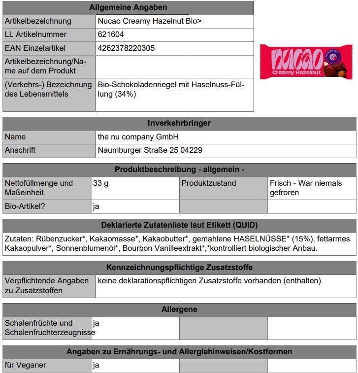Nucao Creamy Hazelnut Bio 12x33 g Rg.