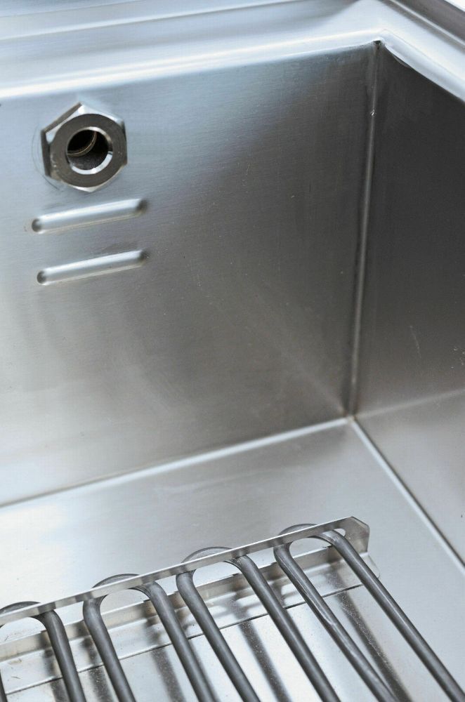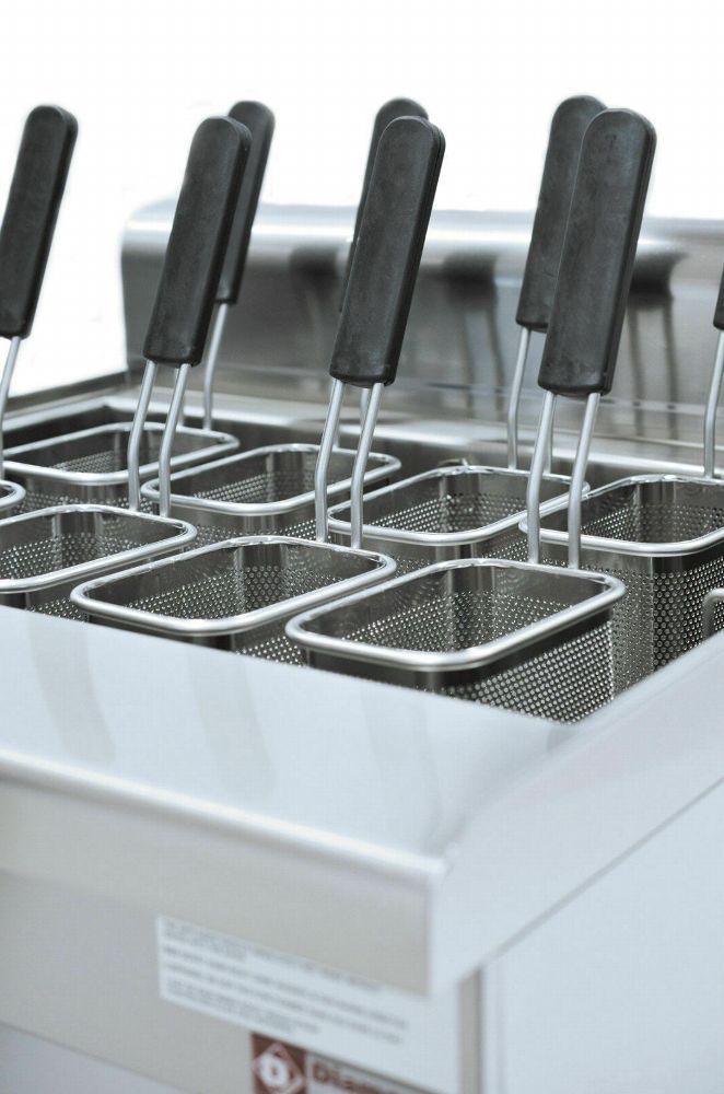 Elektro-Nudelkocher 30 L NEU Becken: abgerundetes Becken aus Edelstahl AISI 316 (15/10 mm dick) beständig gegen Salzkorrosion und Verschleiß Kapazität: 30 L Beckenmaß: 545 x 370 x 190 mm Lieferung ohne Nudelkörbe (optional zu 89,95€ á Stk. dazubestellbar) Anschluss: Anschlusswert: 9,0 kW Elektrischer Anschluss: 400V / 3N / 50 Hz