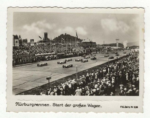 Nürburgrennen. Start der großen Wagen. Altes Klein-Format s/ w Foto 1930er Jahre