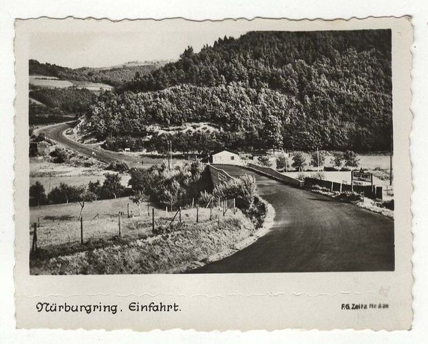 Nürburgring Einfahrt. Altes Klein-Format s/ w Foto vermutlich aus den 1930er Jahren