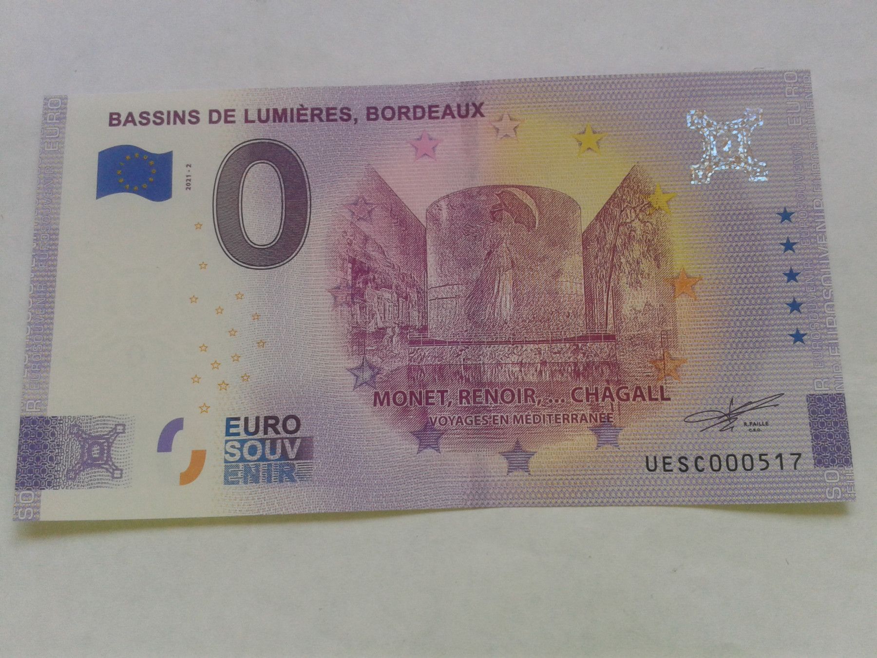 Null euro Schein 0 euro Schein Souvenirschein Bassins de lumieres Bordeaux 2021-2