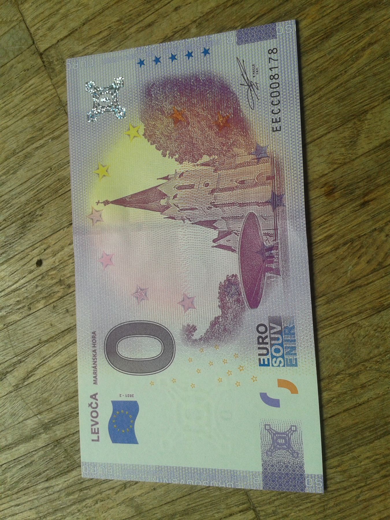 Null euro Schein 0 euro Schein Souvenirschein Levoca Marianska Hora 2021-2