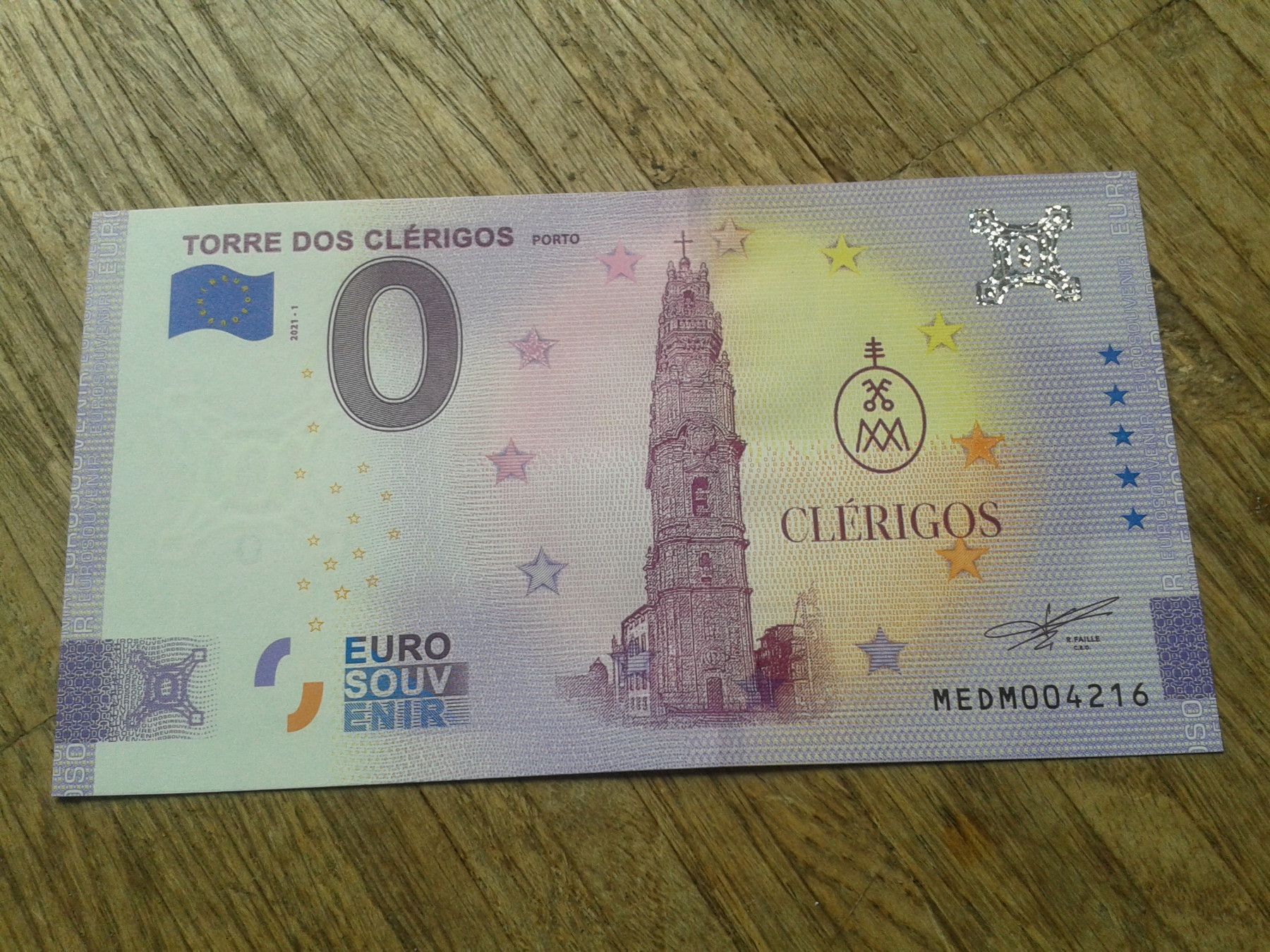 Null euro Schein 0 euro Schein Souvenirschein Torre dos Clérigos Porto 2021-1