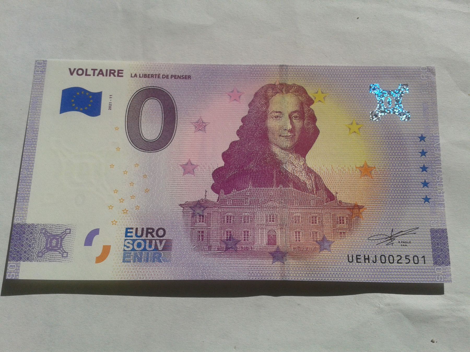 Null euro Schein 0 euro Schein Souvenirschein Voltaire 2021-11